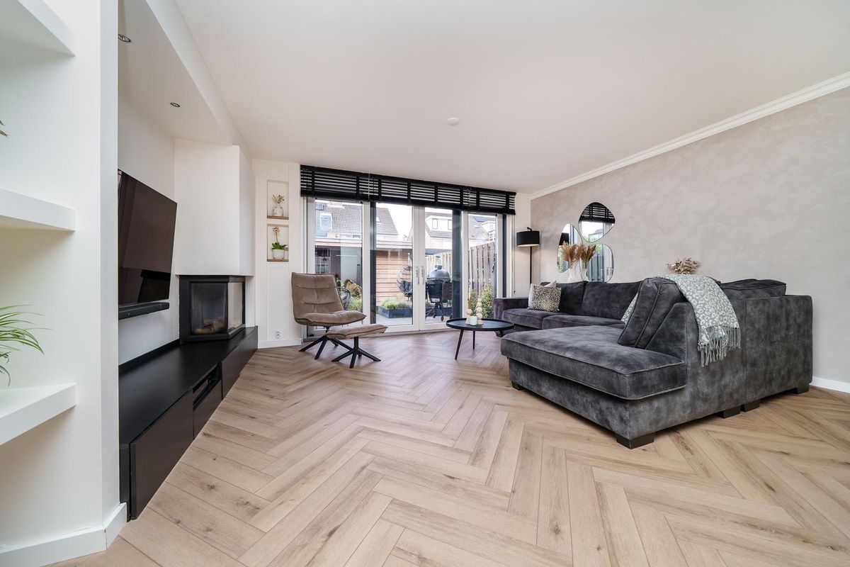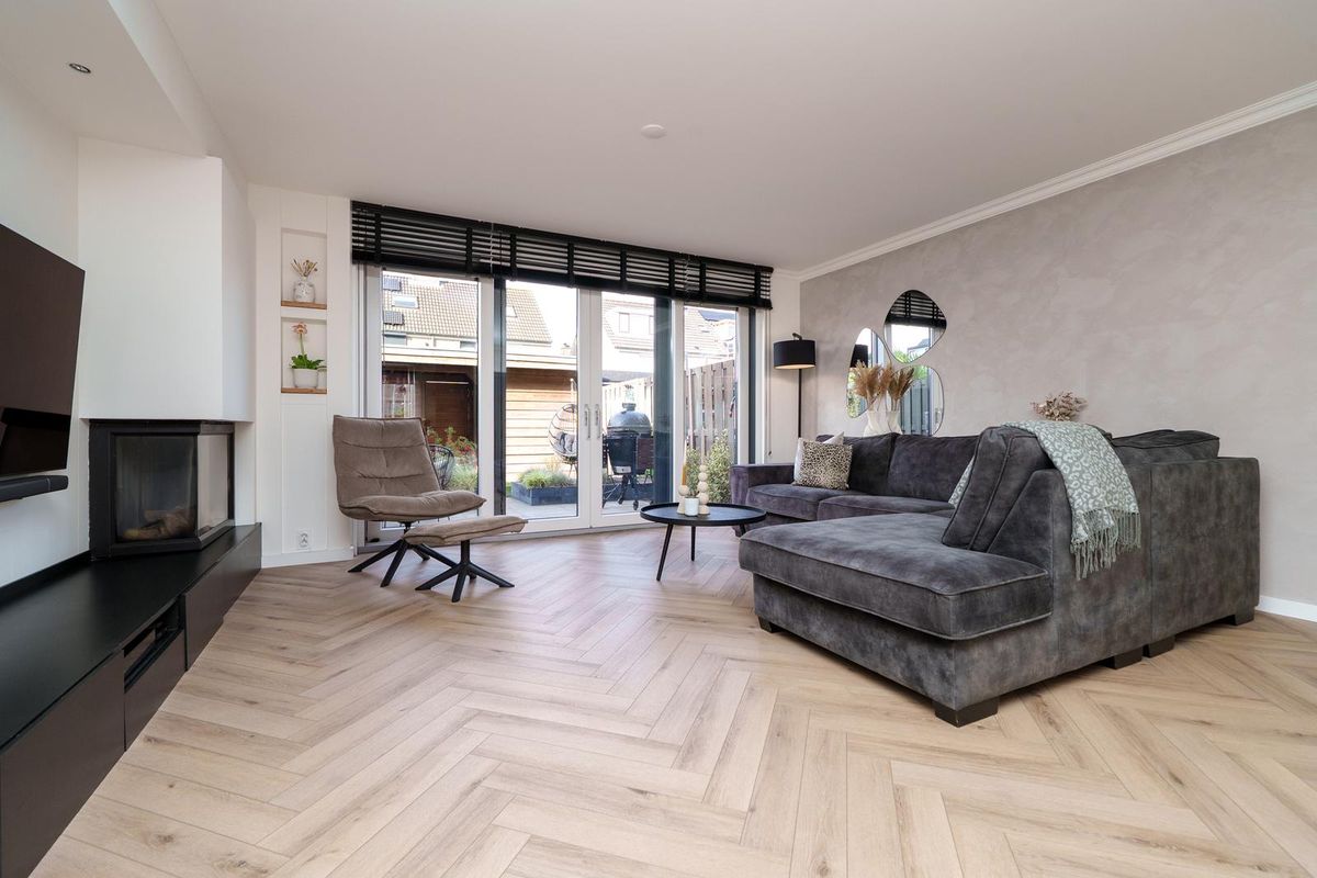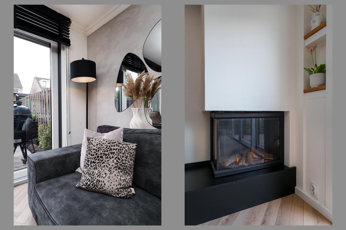 * Ruime en lichte woonkamer voorzien van een sfeervolle gashaard en de trapkast. Aan de achterzijde bevindt zich een schuifpui met toegang tot de achtertuin. De woonkamer is aan de achterzijde uitgebouwd;