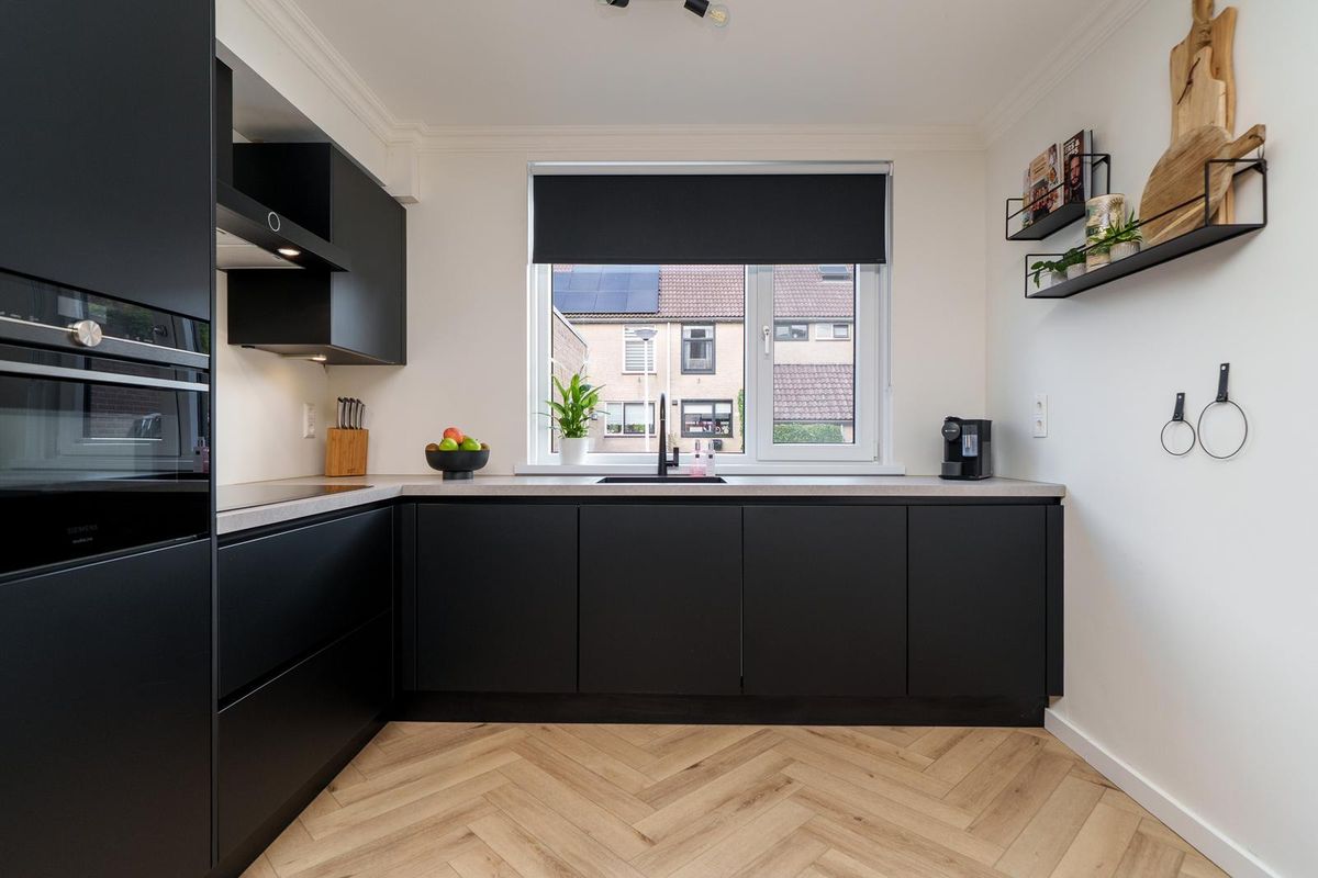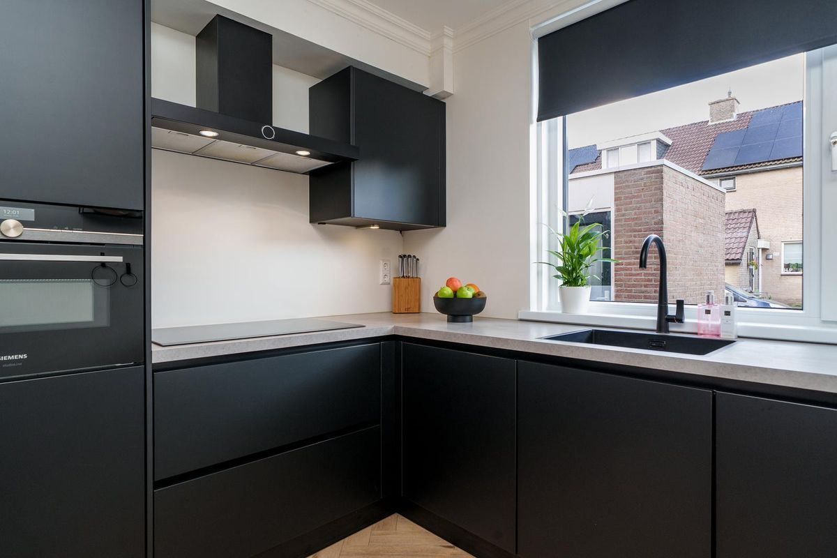 * Aan de voorzijde bevindt zich de open keuken (2021) voorzien van een inductie kookplaat, afzuigkap, koel/vriescombinatie, combimagnetron en een vaatwasser (2025);