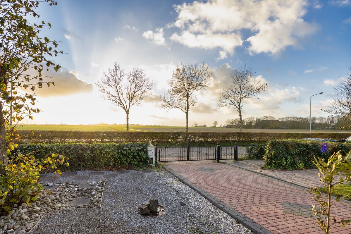 De grote voortuin is voorzien van gazon, siergrind en een ruime oprit voor meerdere auto's. Door zijn ligging op het zuidwesten is hier op elk moment van de dag wel een zon- of schaduwplekje te vinden. Aan de zijkant van de woning bevind zich ook een ruime overkapping. Deze is vanuit de woonkamer en van buitenaf te bereiken.