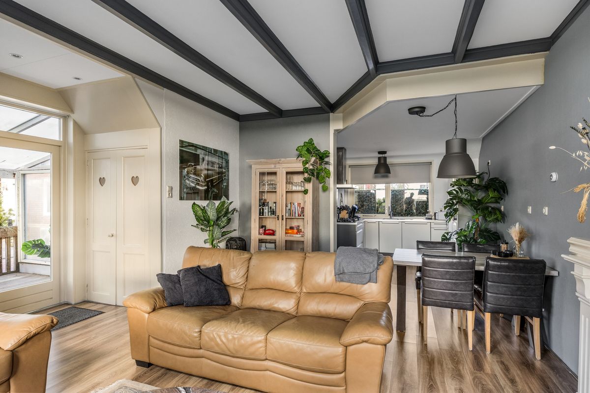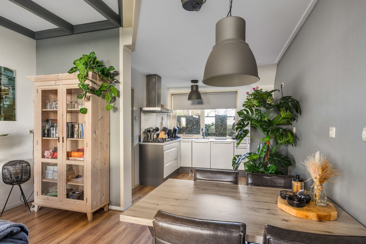 Entree, hal met trapopgang en badkamer. Gezellige woonkamer met balkenplafond, een schouw en veel lichtinval. De moderne keuken is voorzien van inbouwapparatuur. De U-vorm biedt veel werk- en opbergruimte. De openslaande deuren in de woonkamer geven toegang naar de aangrenzende overkapping. In de overkapping kun je heerlijk beschut zitten door de beglazing aan beide zijden. Het landelijke uitzicht naar het zuidwesten is hiervandaan prachtig.