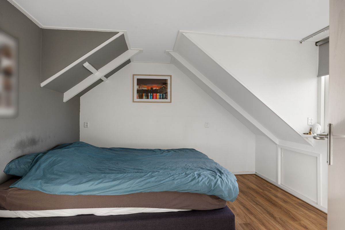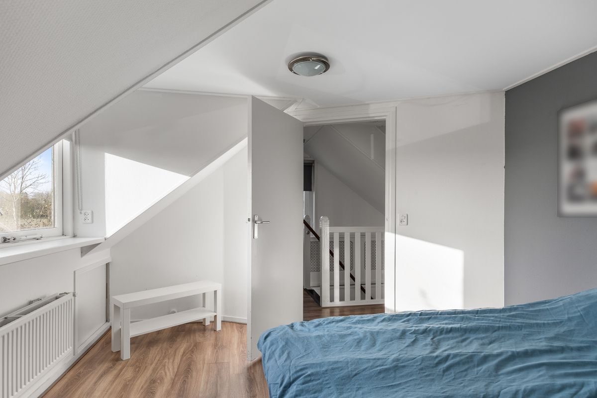 De verdieping beschikt over een centrale overloop, 3 slaapkamers en een bergkast. De bergkast is bereikbaar via de slaapkamer aan de voorzijde.