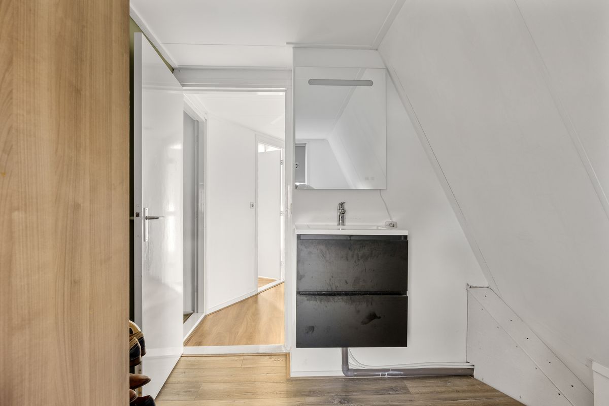 De eerste verdieping van het gastenverblijf is via de trap in de woonkamer bereikbaar. Op de overloop is er plaats voor witgoed- en CV-ketel aansluitingen. De overloop biedt toegang naar de 2e slaapkamer. Door het dakvenster is hier voldoende licht.