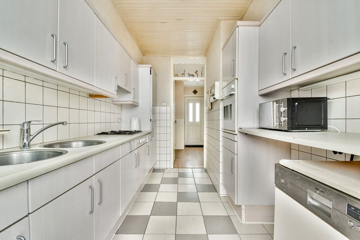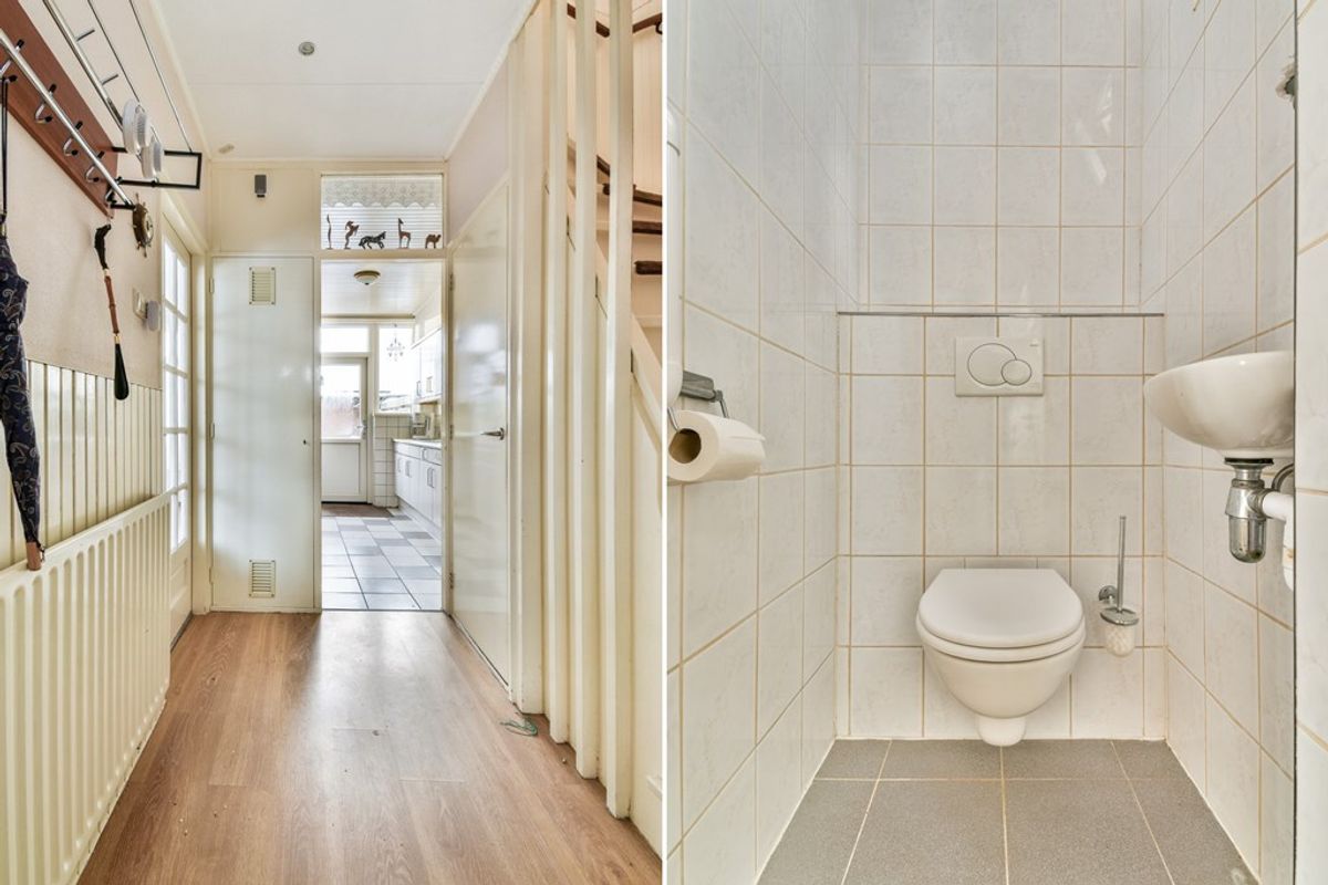 Entree in de hal met de volledig betegelde toiletruimte voorzien van een zwevend toilet en een fonteintje, de trapopgang, de garderoberuimte, de trap- en meterkast. Vanuit de hal is er toegang tot de keuken en de woonkamer. Deze zonnige doorzonwoonkamer biedt een praktische vaste bergkast en grote raampartijen met een mooi zicht op de landelijke omgeving. Aan de voorzijde is voldoende ruimte voor een zitgedeelte, terwijl de achterzijde zich uitstekend leent als eetgedeelte. Het raam in de achtergevel is voorzien van een screen en een zonnescherm. De keuken is geplaatst in een parallelle opstelling en beschikt onder meer over een (gas)kookplaat, losstaande vaatwasser en magnetron, ingebouwde oven en een koel-vriescombinatie. Vanuit de keuken is de achtergelegen tuin te bereiken.