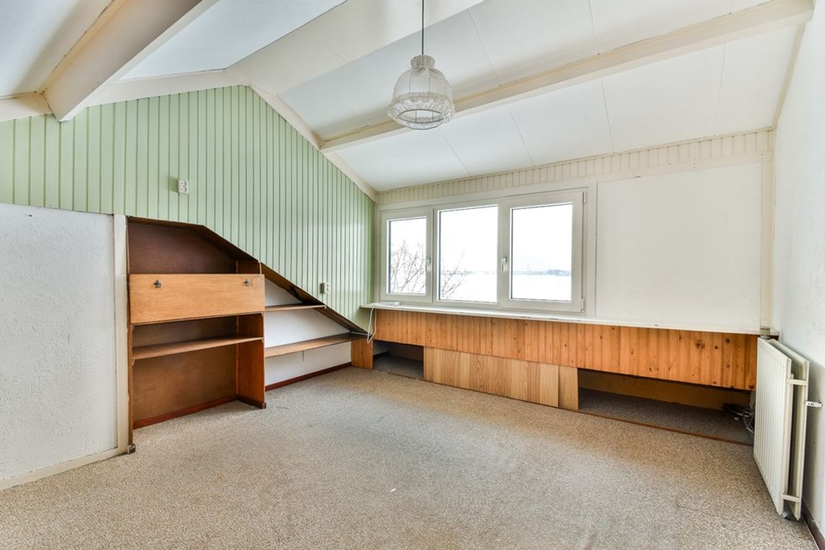 De achterzijde is uitgebouwd met een gevelbrede dakkapel en voorzien van een verhoogde nok waardoor op deze etage twee volwaardige slaapkamers zijn ontstaan, beide met een prachtig zicht over het polderlandschap. Op de voorzolder vind je de CV-installatie en de witgoedaansluitingen. De vierde, kleinere slaapkamer biedt vaste kastruimte en bergmogelijkheden achter de knieschotten. De raampartij is uitgerust met een elektrisch screen. De ruime vijfde slaapkamer biedt diverse bergmogelijkheden en is eveneens voorzien van een elektrisch screen.