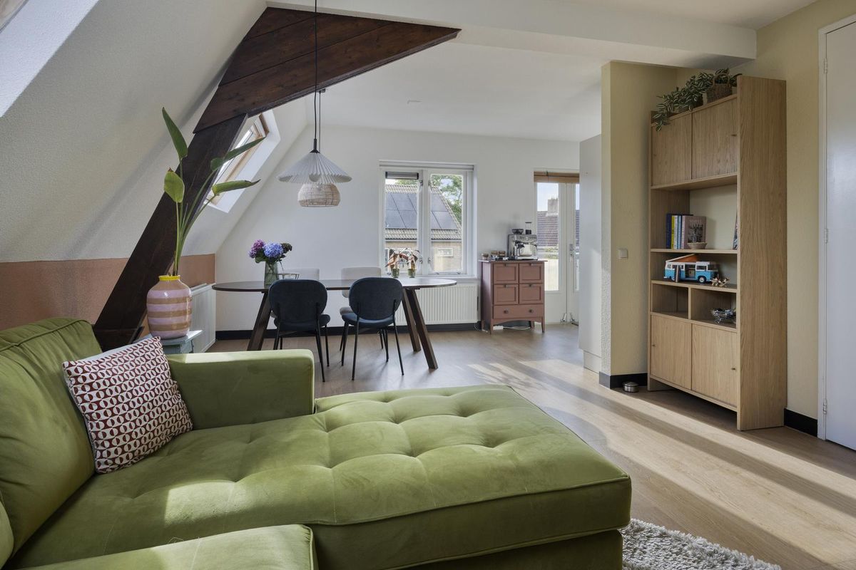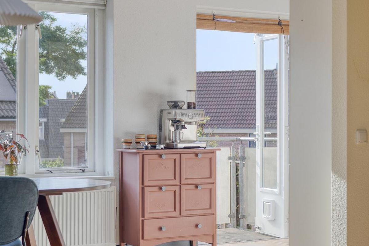 Binnenkomst in de woning voelt direct prettig door de strakke en moderne afwerking. Aan de voorzijde ligt de lichte woonkamer met open keuken. De keuken is compleet uitgerust met o.a. een oven (nieuw, 2025), koel-/vriescombinatie, magnetron, vaatwasser, 5-pits gasfornuis en afzuigkap. Vanuit de keuken stap je zo het ruime dakterras op, waar je in de ochtend- en middagzon heerlijk kunt ontspannen.