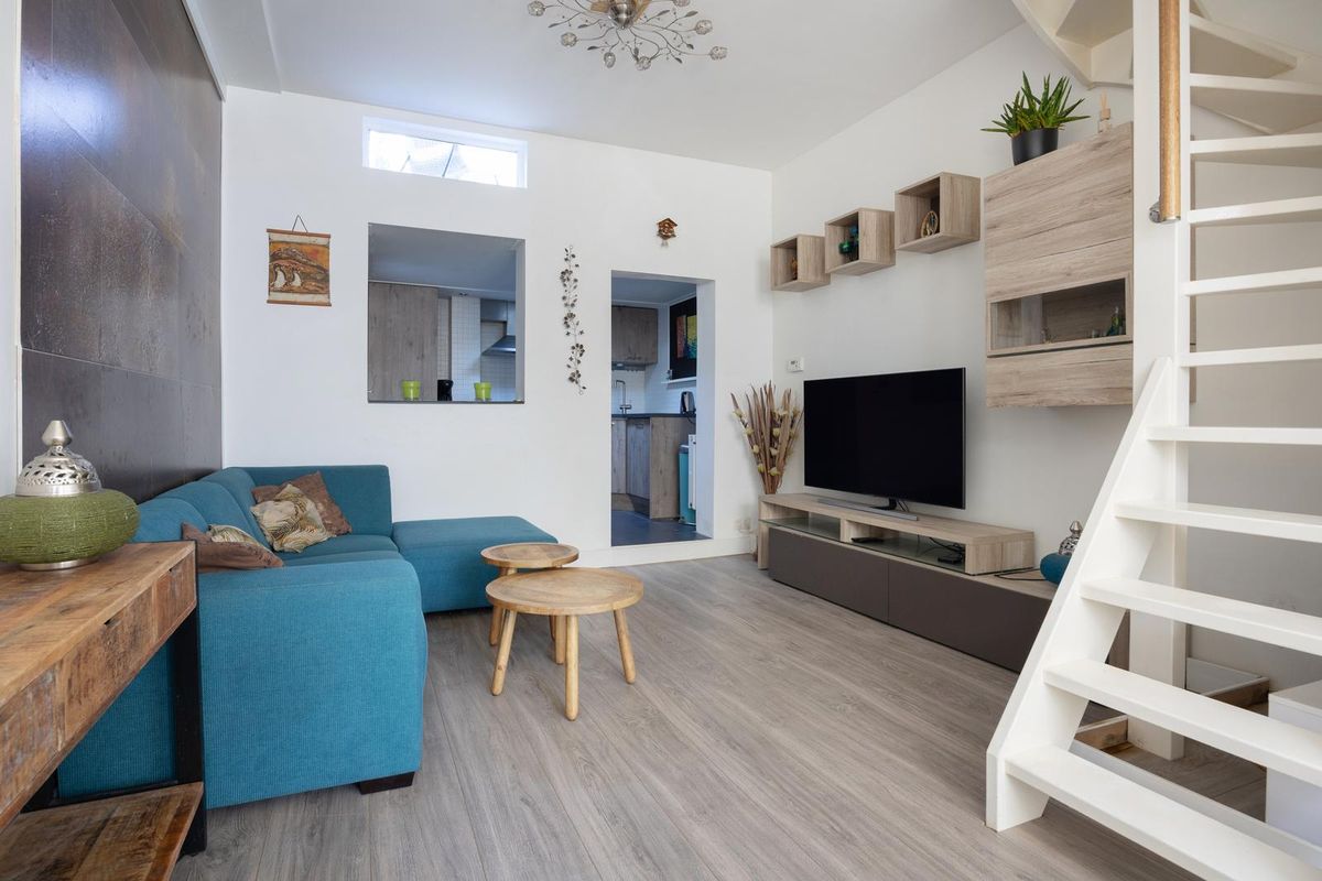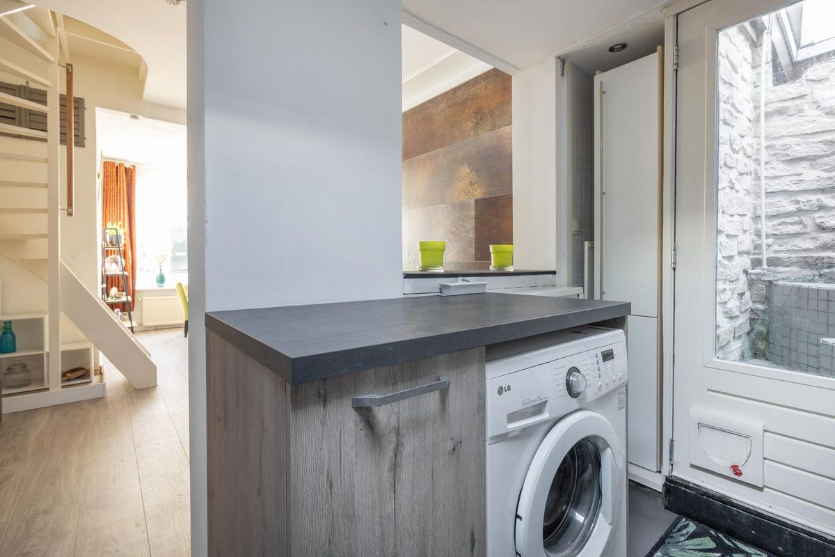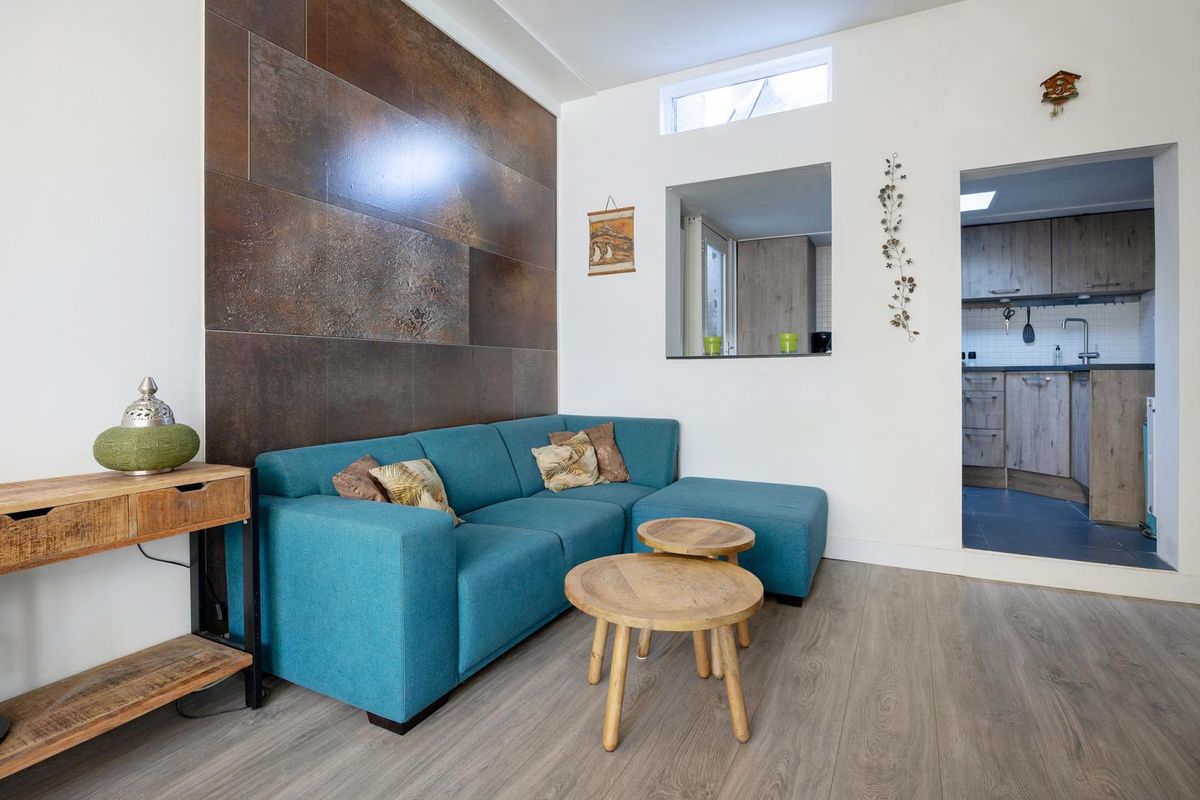 Je komt binnen via de hal met toilet en meterkast. De woonkamer is licht, sfeervol en praktisch ingedeeld met ruimte voor een zit- en eethoek. Dankzij het hoge plafond en het grote raam aan de voorzijde voelt het hier heerlijk ruim. Een speels detail is het raampje tussen de woonkamer en de keuken, wat zorgt voor extra lichtinval en contact tussen beide ruimtes.