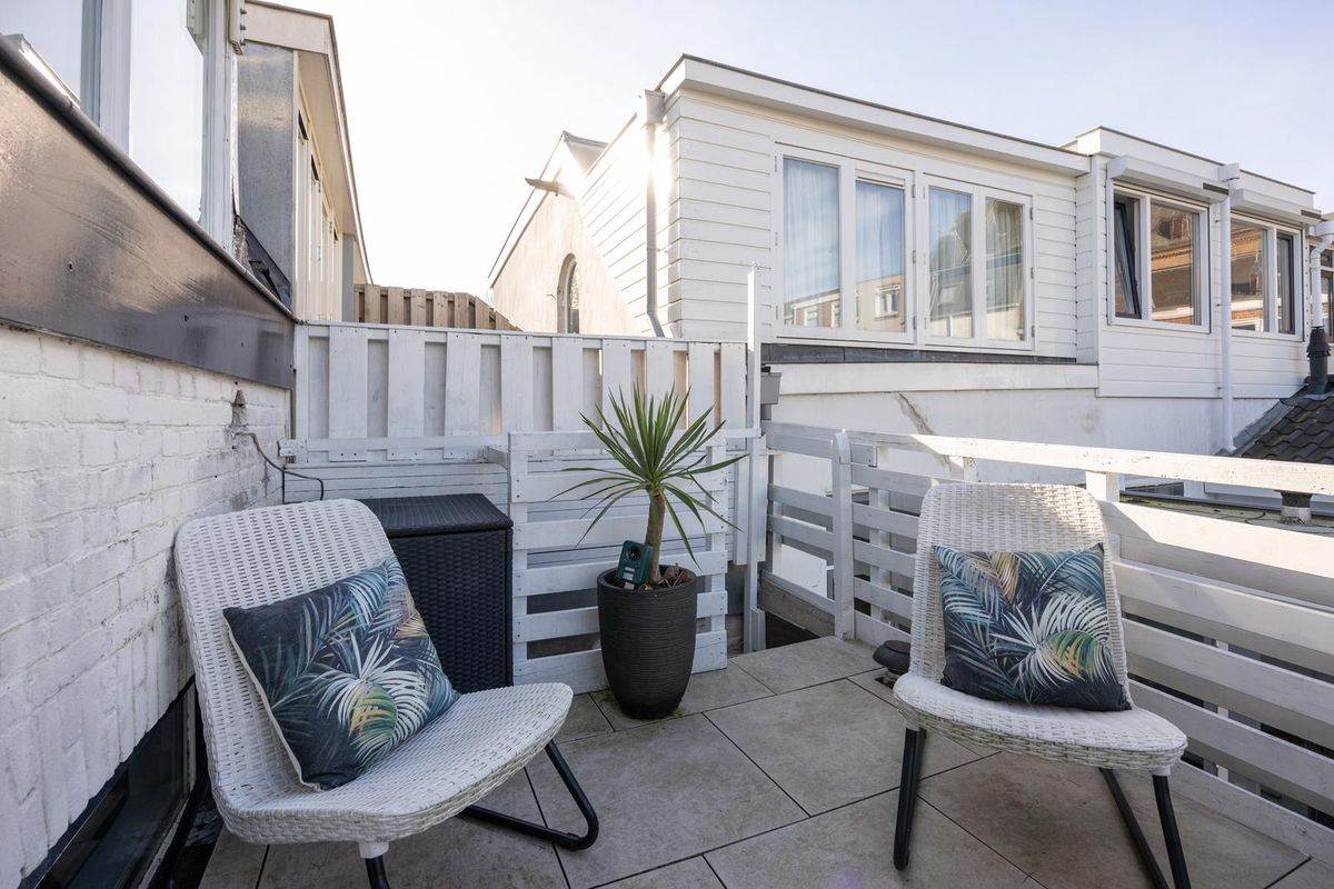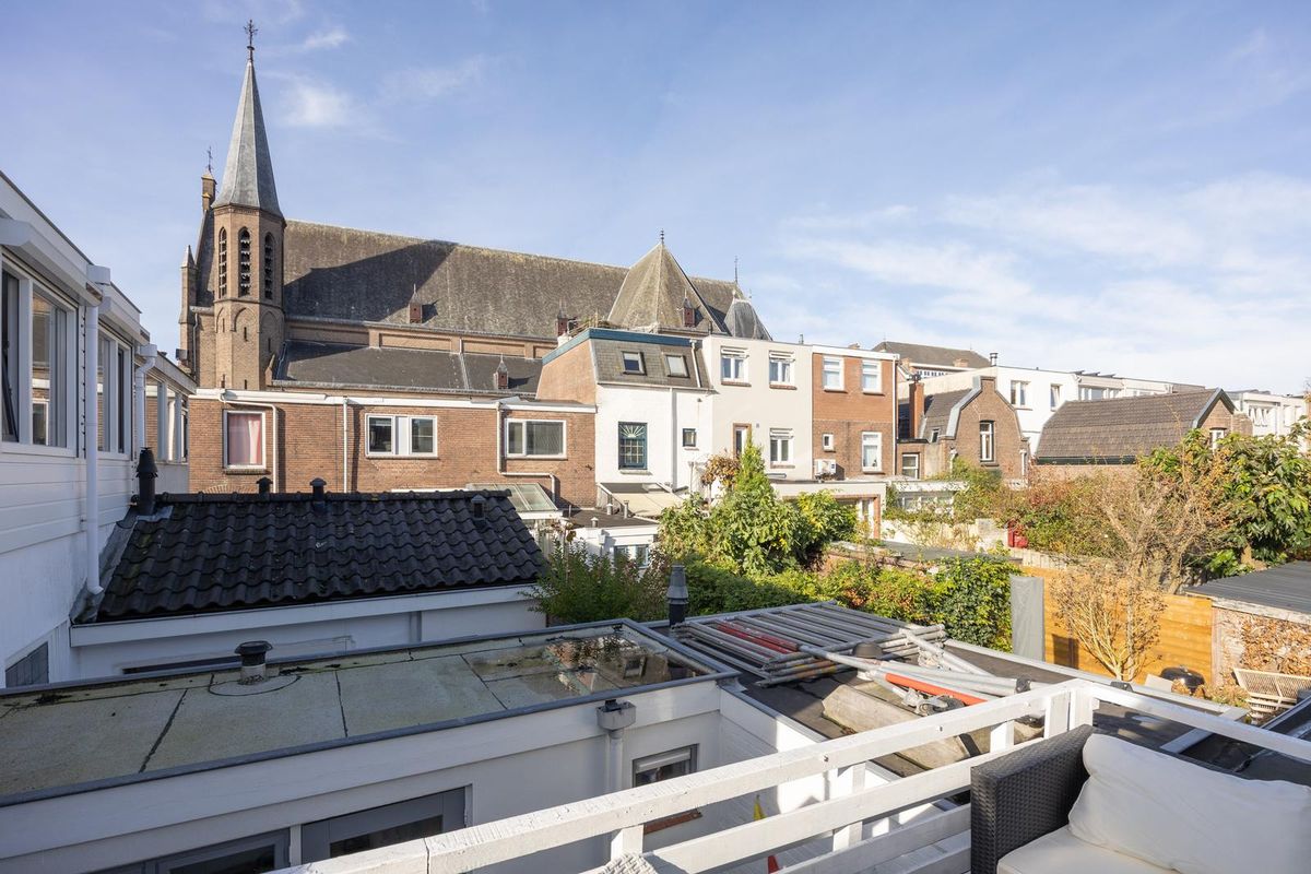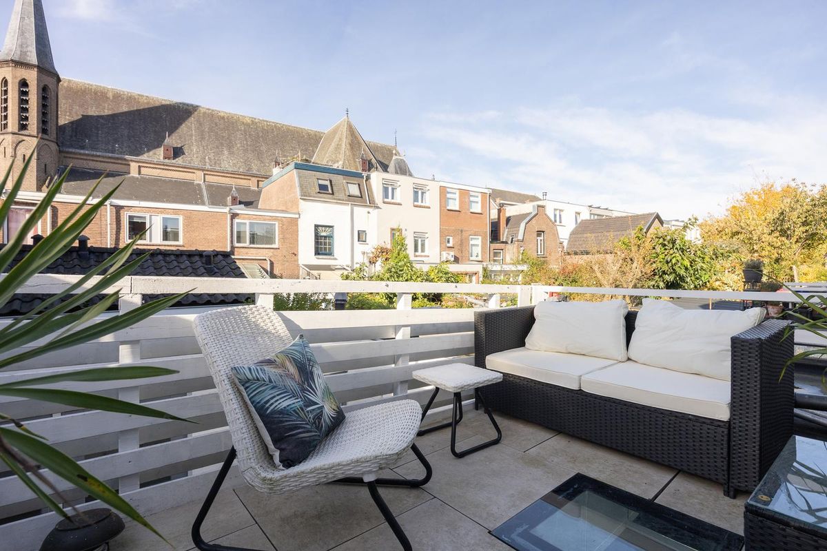 Het dakterras ligt op het westen en is een heerlijke plek om buiten te zitten met een drankje of een goed boek. Dankzij de ligging geniet je hier volop van de middag- en avondzon. Een fijne, rustige buitenplek midden in de stad en leuk uitzicht op de voormalige H. Joseph kerk!