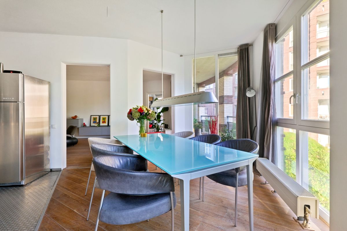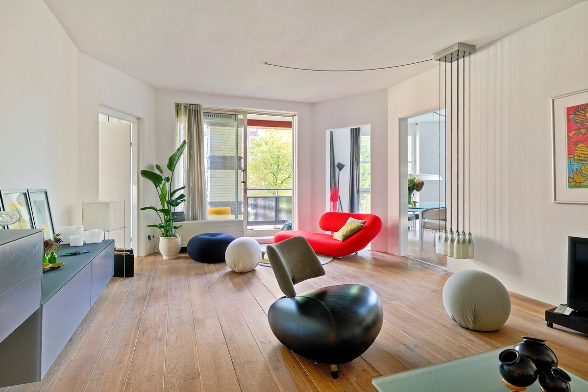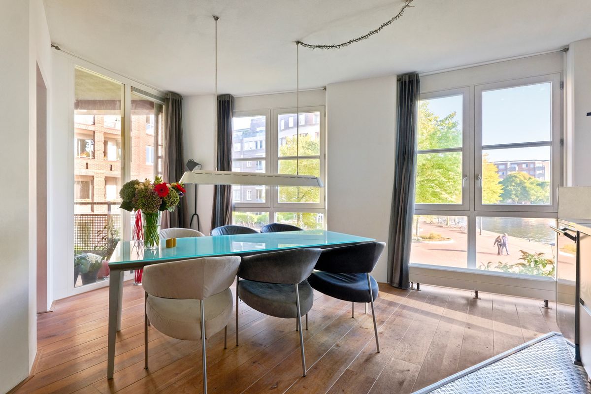This beautifully located 3-room apartment of approximately 109 m² with parkingspot in the underground garage en storage  is part of the Meandercomplex (completed in 2001 and designed by architect Rob Krier). The building is situated directly on the Kostverlorenvaart and features a car-free square/quay at the front, owned by the association. In addition, there is a communal garden, underground parking garage, and private storage rooms. In short: unique living on freehold land!