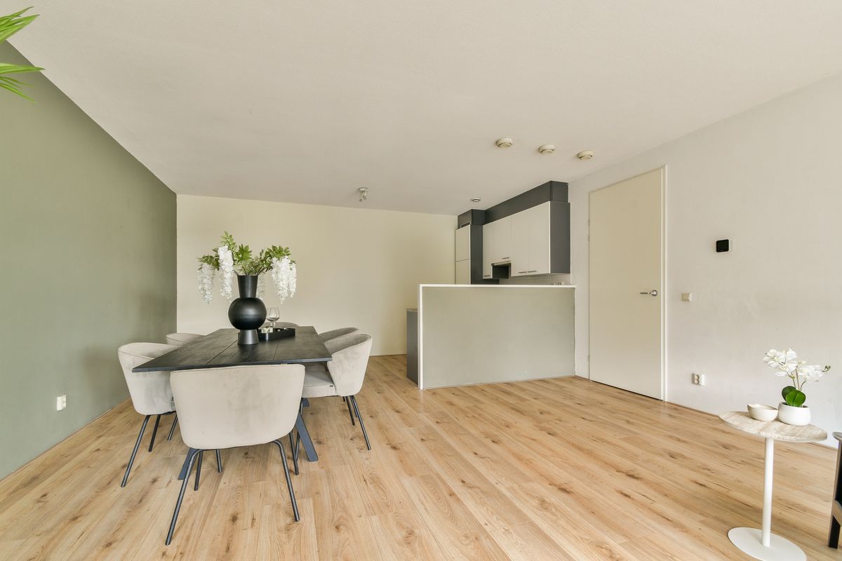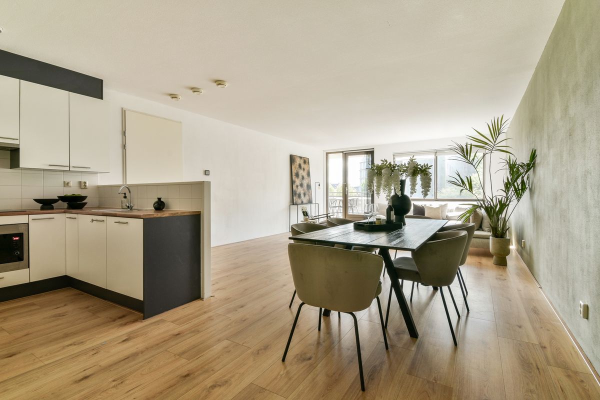 Via de centrale hal stap je het appartement binnen, waar meteen duidelijk wordt hoe praktisch en overzichtelijk de indeling is. Vanuit de hal heb je toegang tot alle vertrekken. De woonkamer met eetgedeelte vormt het hart van de woning: een lichte en ruime plek dankzij de grote ramen, die bovendien directe toegang geven tot het balkon. Aansluitend bevindt zich de keuken, slim ingedeeld en ideaal om uitgebreid te koken terwijl je in contact blijft met de woonkamer.