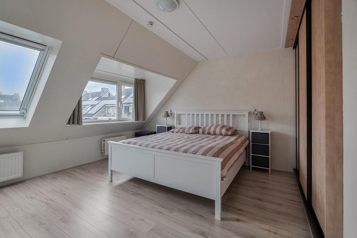 Slaapkamer 1 (ca. 18 m2) is gelegen aan de achterzijde van de woning en beschikt over een 3-deuren schuifkastenwand met verlichting, een elektrisch bedienbaar rolluik met afstandsbediening, een dakkapel met hor en een dakraam.