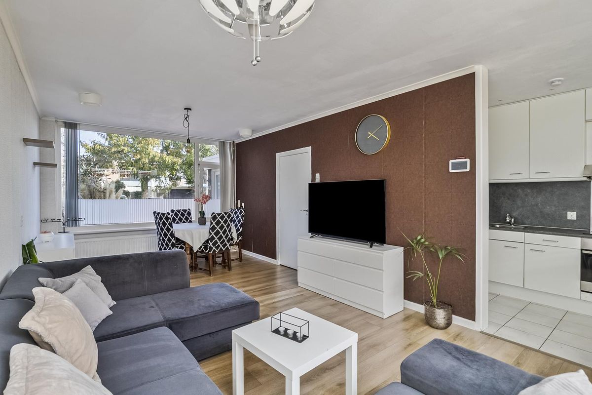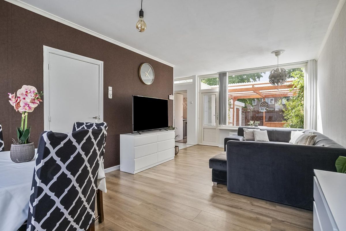 Binnen in de woonkamer wordt u verwelkomd door een open en lichte indeling. Grote ramen aan de voor- en achterzijde zorgen voor een overvloed aan natuurlijk licht en geven het geheel een ruimtelijk gevoel. Het is een fijne plek waar u een comfortabele zithoek en een aparte eetkamer kunt creëren. Vanuit de woonkamer loopt u bovendien rechtstreeks de tuin in, wat binnen en buiten naadloos met elkaar verbindt.