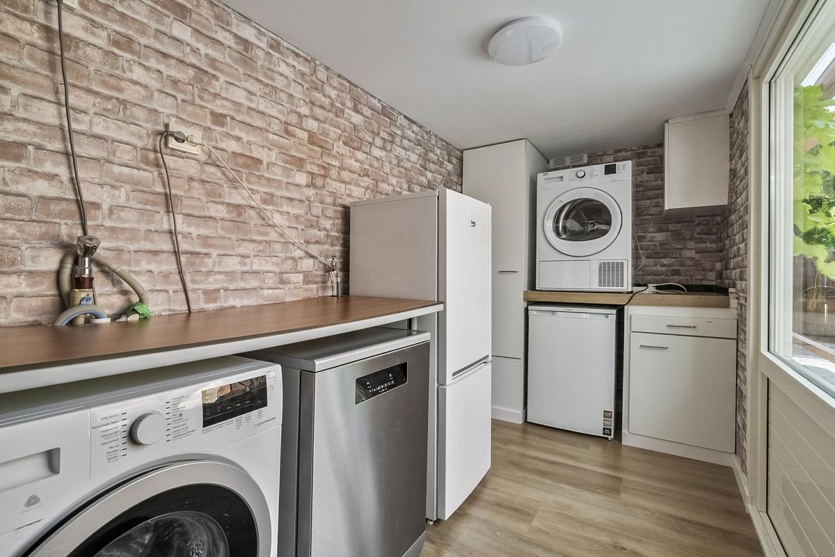 Naast de keuken bevindt zich een handige bijkeuken, ideaal voor extra opslag. Tevens zijn hier de aansluitingen voor witgoed aanwezig, wat deze ruimte multifunctioneel maakt.