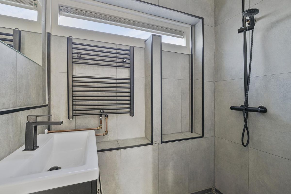 De badkamer op deze verdieping is volledig betegeld en strak afgewerkt. Hier beschikt u over een open douche, een wastafel en een handdoekradiator. De ruimte is netjes onderhouden en biedt alle comfort voor dagelijks gebruik.
