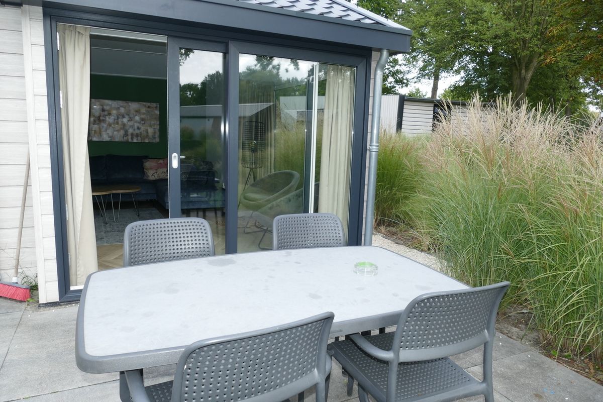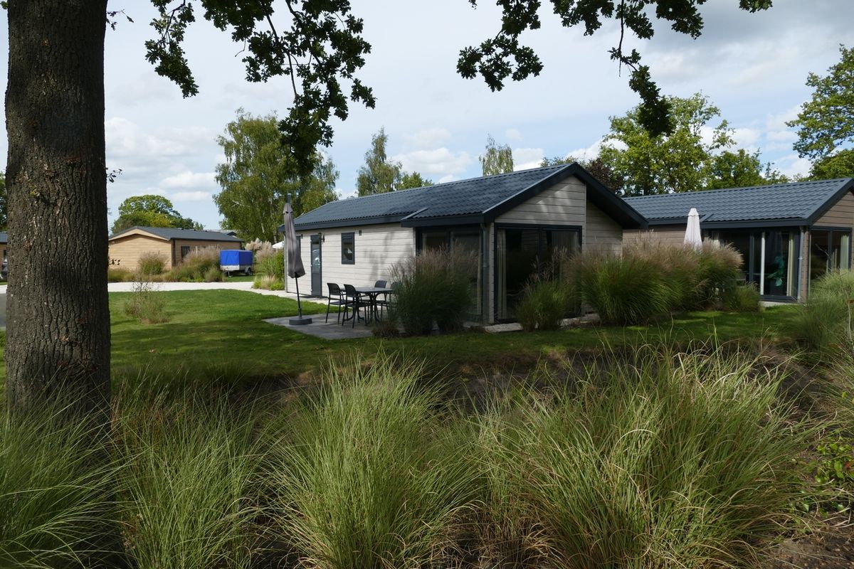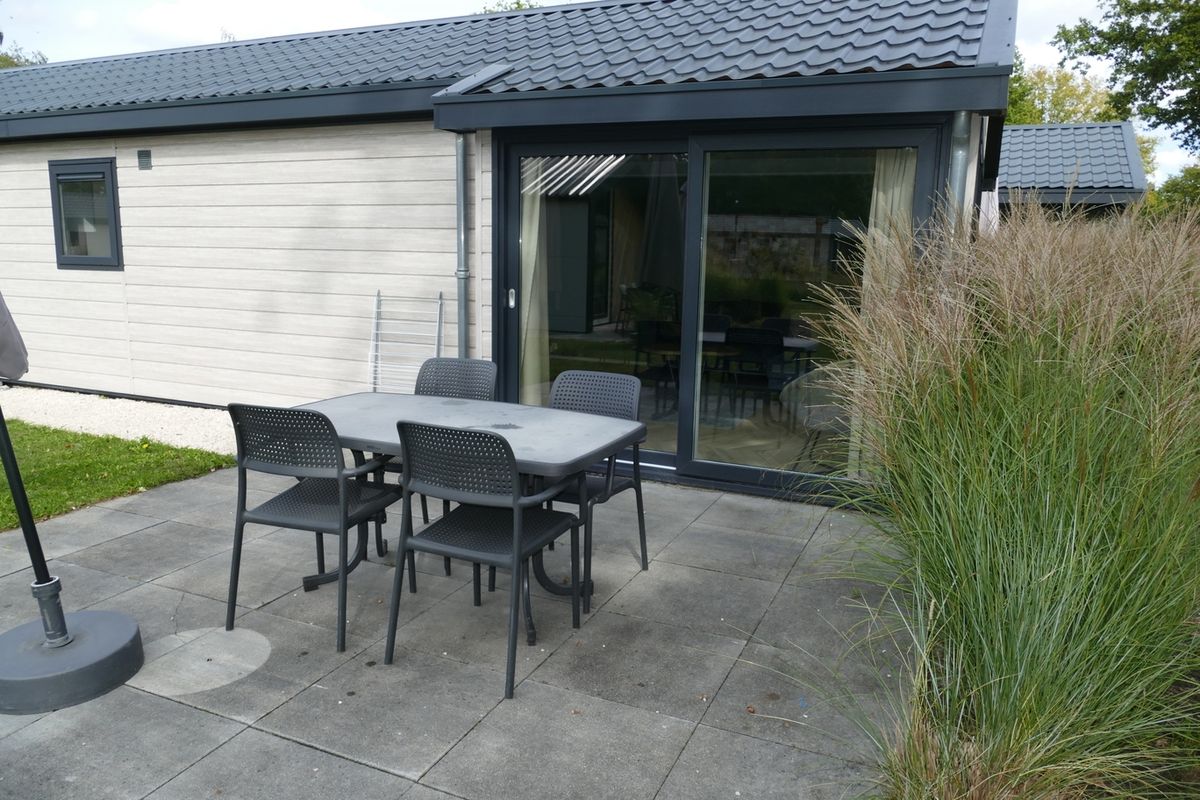 De buitenruimte is een van de grootste pluspunten van dit chalet. De tuin ligt aan de rand van het park, direct aan een groene wadi, wat zorgt voor extra privacy en een prachtig, natuurlijk uitzicht. De beschutting van de bomen biedt aangename schaduw in de ochtend, terwijl het terras op het zuidwesten de rest van de dag in de zon baadt. Hierdoor kunt u optimaal genieten van de zon en het buitenleven.