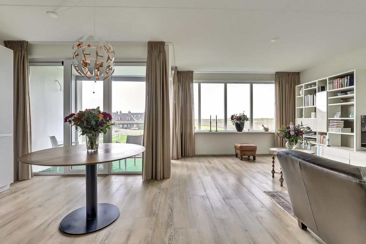 De woonkamer en keuken vormen samen één royale, open leefruimte met een prettige indeling en een warme, moderne sfeer. De woonkamer is ruim opgezet en heeft grote ramen die zorgen voor veel daglicht en een fraai uitzicht over het omliggende landschap.