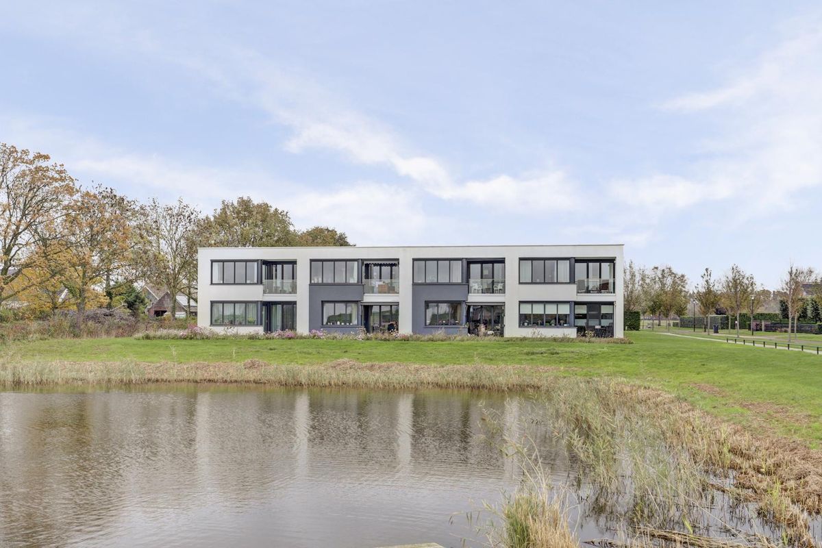 Het complex wordt omringd door een fraai aangelegde, gezamenlijke tuin met veel groen en uitzicht over het open landschap. Aan de voorzijde is ruime parkeergelegenheid beschikbaar voor bewoners en bezoekers. Het geheel oogt verzorgd en modern, met strakke lijnen en natuurlijke materialen in de gevels.
