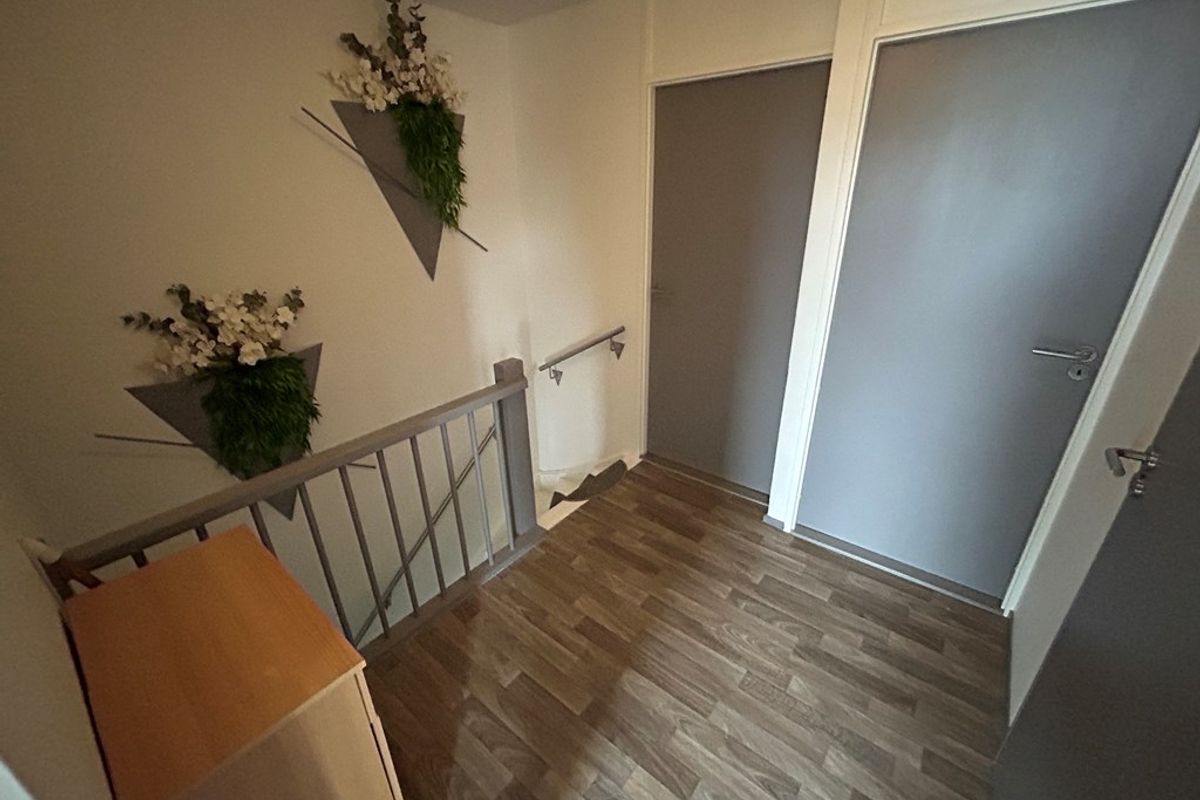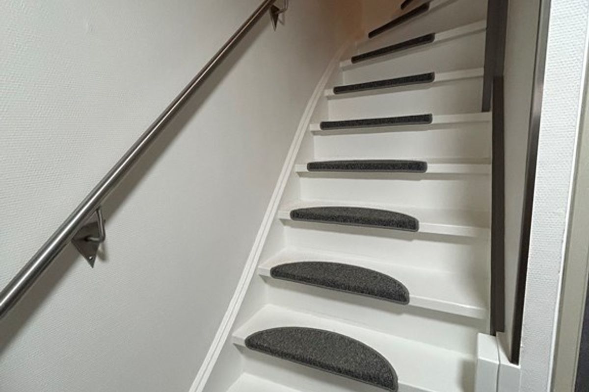Overloop 2,20 x 1,80 met novilon en vlizoptrap naar zolder.