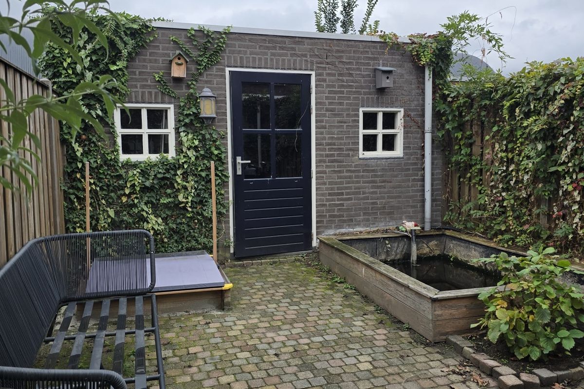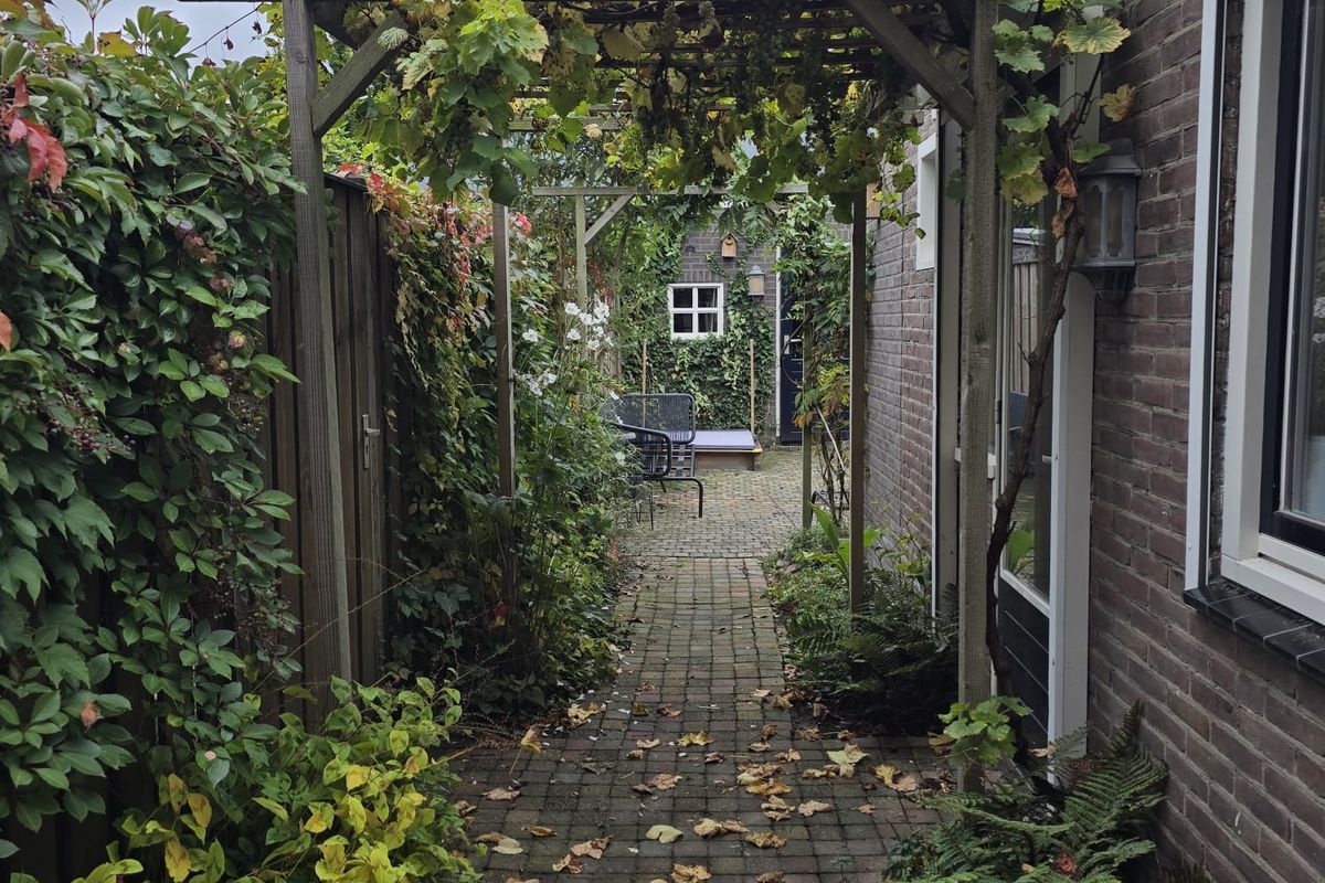 De achtertuin is te bereiken via de openslaande deuren vanuit de woonkamer of via de tuindeur in de bijkeuken. De tuin heeft een achterom met een poort naar de brandgang, ideaal voor het stallen van fietsen of het buiten zetten van containers.