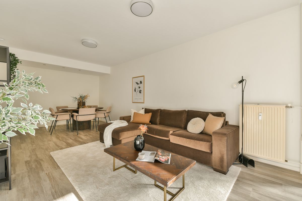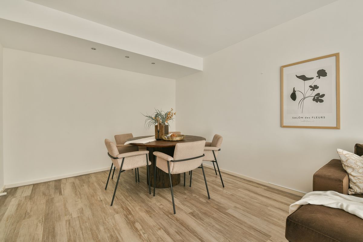De royale woonkamer is licht en breed, met grote ramen die zorgen voor veel natuurlijke lichtinval. De ruimte is groot genoeg voor een comfortabele zithoek én een royale eethoek. De nette afwerking maakt de ruimte direct bewoonbaar.
