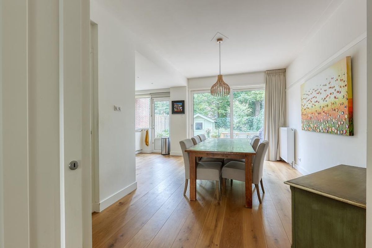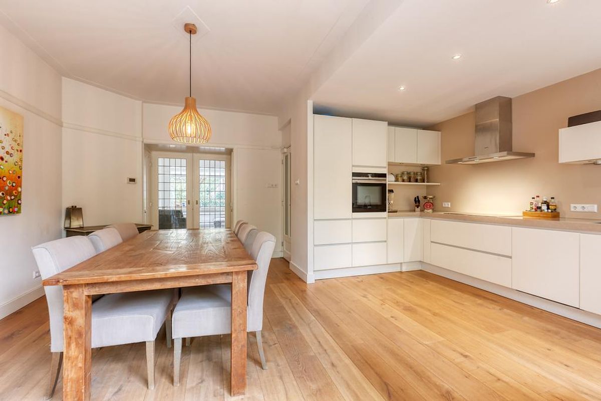 Entree met originele details, trap naar eerste verdieping. Separaat toilet met fonteintje, voorraad kelder. De ruime woonkamer met sfeervolle elektrische haard beschikt over veel natuurlijk licht dankzij de grote raampartijen. De eetkamer kan worden afgesloten middels karakteristieke en suite deuren met ingebouwde kasten en biedt toegang tot de gezellige tuin (NW) met schuurtje. De moderne open keuken in lichte kleurstelling beschikt over alle benodigde apparatuur zoals inductie kookplaat met afzuigkap, ruime combi-oven, vaatwasser en koelkast met aparte vriezer.