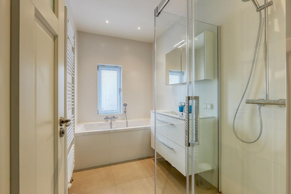 Op deze verdieping bevinden zich 2 riante slaapkamers met ingebouwde garderobe kasten en airconditioning en een derde kleinere slaapkamer. De slaapkamers aan de achterzijde bieden toegang tot het balkon op het noordwesten. De moderne badkamer is voorzien van een inloopdouche, ligbad, wastafel met meubel en design radiator. Tweede separaat toilet met fonteintje.