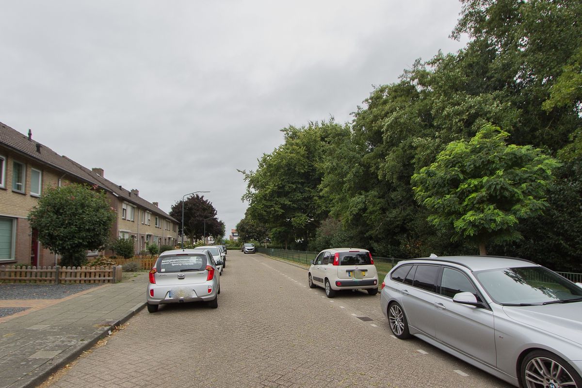 De achtertuin is volledig omsloten en wacht erop om door de nieuwe eigenaar ingericht te worden. Achterin staat een stenen berging met overkapping en een poort naar de brandgang. Parkeren? Dat kan eenvoudig in de straat.