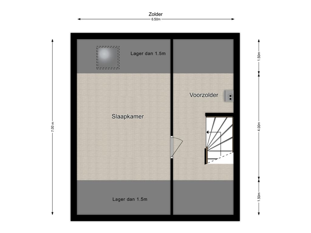 Via een vaste trap bereik je de voorzolder met cv-opstelling (Vaillant HR, 2013), wasruimte en een extra vierde slaapkamer.