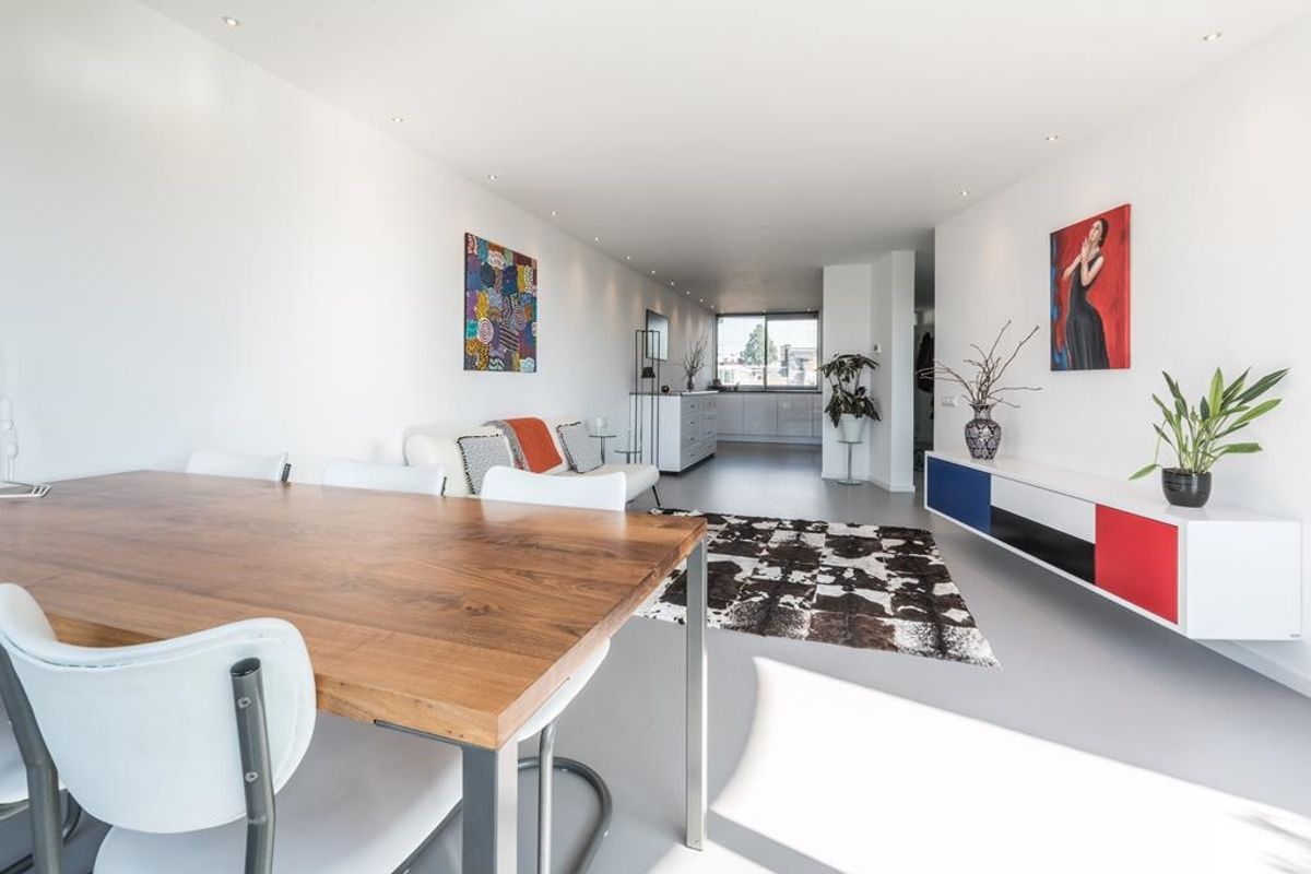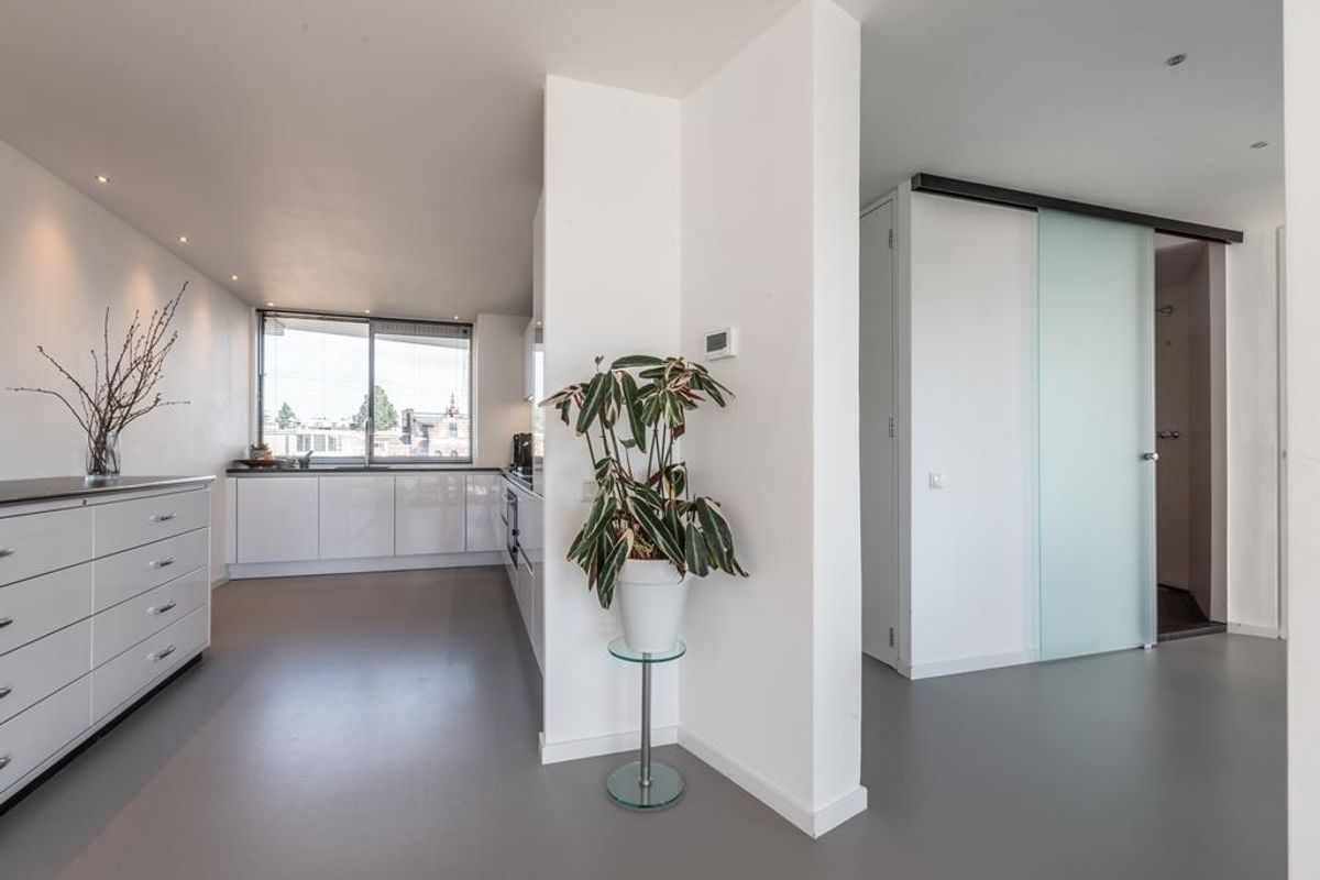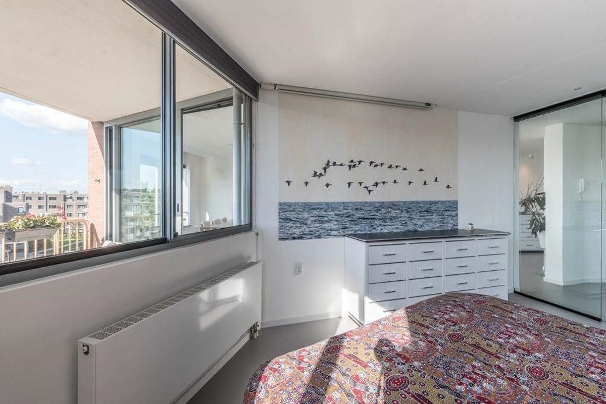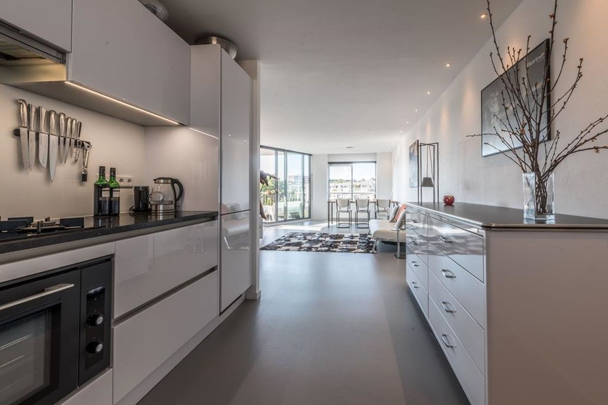 The building is entered via a communal entrance. The apartment is situated on the 4th floor and can be reached via elevator and stairs. The living room has a spacious lounge/dining area opening onto a large balcony facing South West with a beautiful view on the Kostverlorenvaart in Westerpark, Amsterdam.