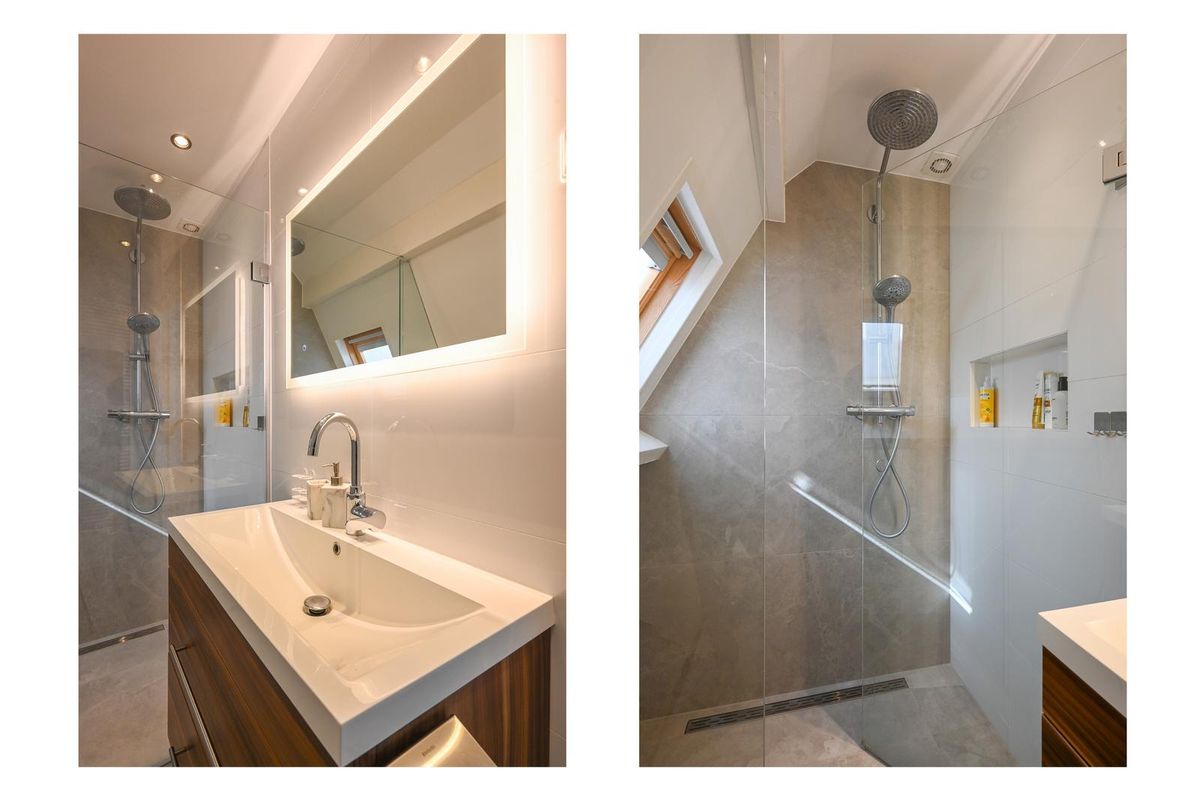 De moderne badkamer (2025) is keurig afgewerkt en voorzien van hedendaags comfort.