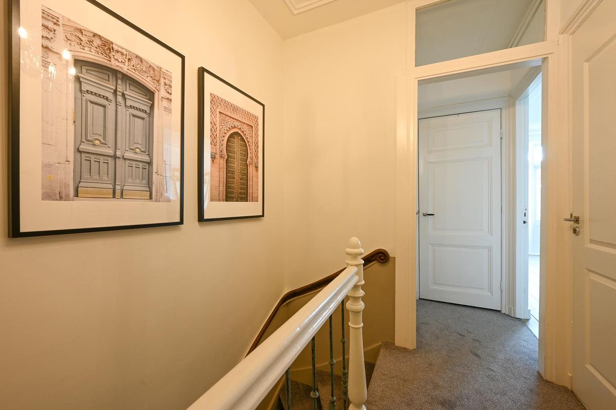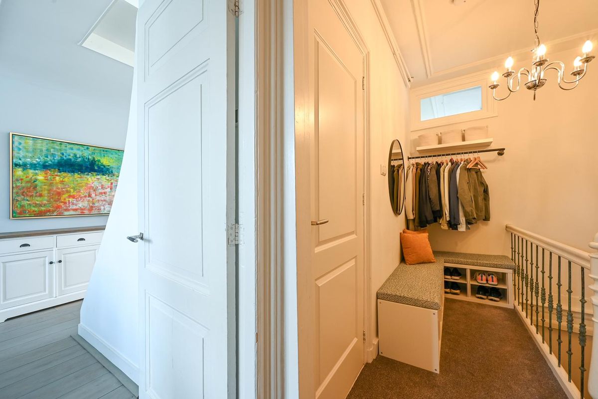 Kapverdieping: De fraaie overloop is voorzien van 2 Velux dakramen, heeft een fraaie balustrade met prachtige authentieke spijlen en veel bergruimte achter de knieschotten. De overloop biedt toegang tot de vertrekken op deze verdieping. Aan de voorzijde bevindt zich de masterbedroom, een ruime en lichte kamer met een charmante dakkapel. De badkamer, vernieuwd in 2025, is modern afgewerkt en uitgerust met een douchegelegenheid met handige nis, een stijlvol wasmeubel met spiegel en verlichting, een handdoekradiator en een tweede toilet.