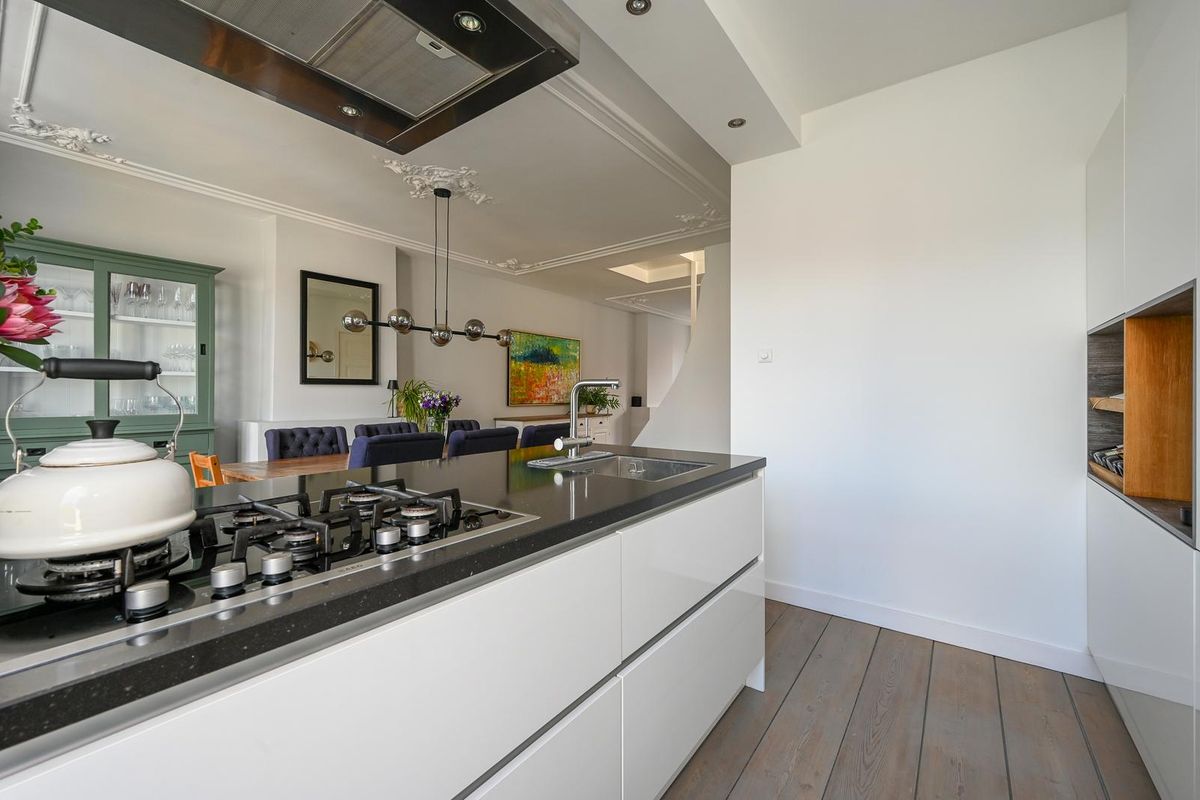 De halfopen keuken sluit praktisch aan op de woonkamer en creëert een lichte en open woonbeleving. Het is de ideale plek om te koken en toch in contact te blijven met het gezelschap.
