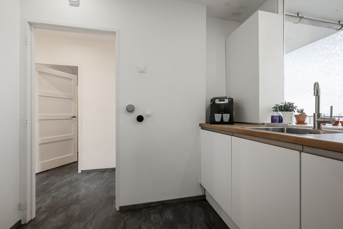 Via de entree bereik je de hal met meterkast. De moderne keuken is praktisch opgezet en voorzien van diverse inbouwapparatuur, wat zorgt voor optimaal kookgemak. De sfeervolle woonkamer is heerlijk licht en vormt een fijne plek om te ontspannen dankzij de grote raampartijen en prettige lichtinval.