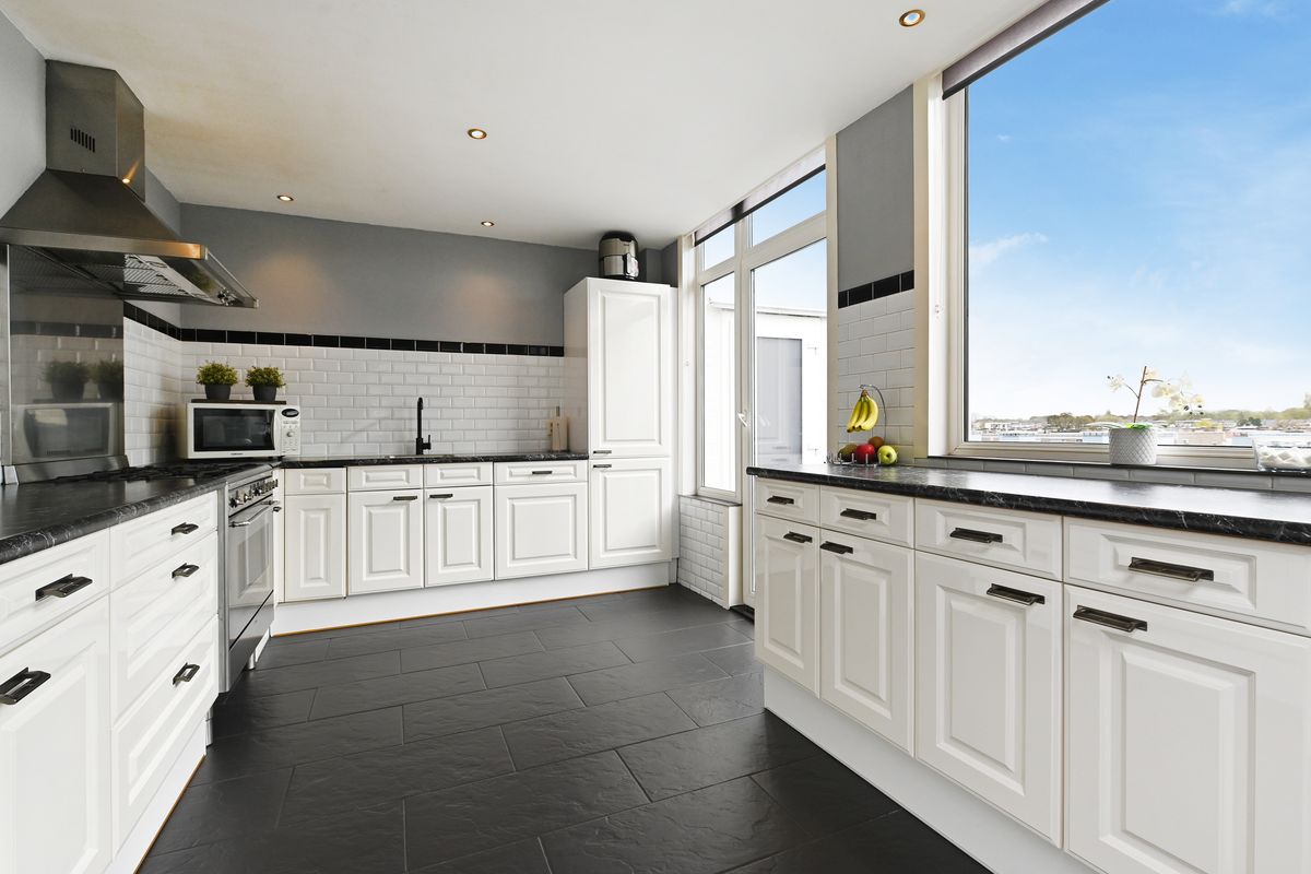Ruim en licht dubbel bovenhuis (112 m²) met 3 slaapkamers, royale keuken en fraai uitzicht over het water en de stad.