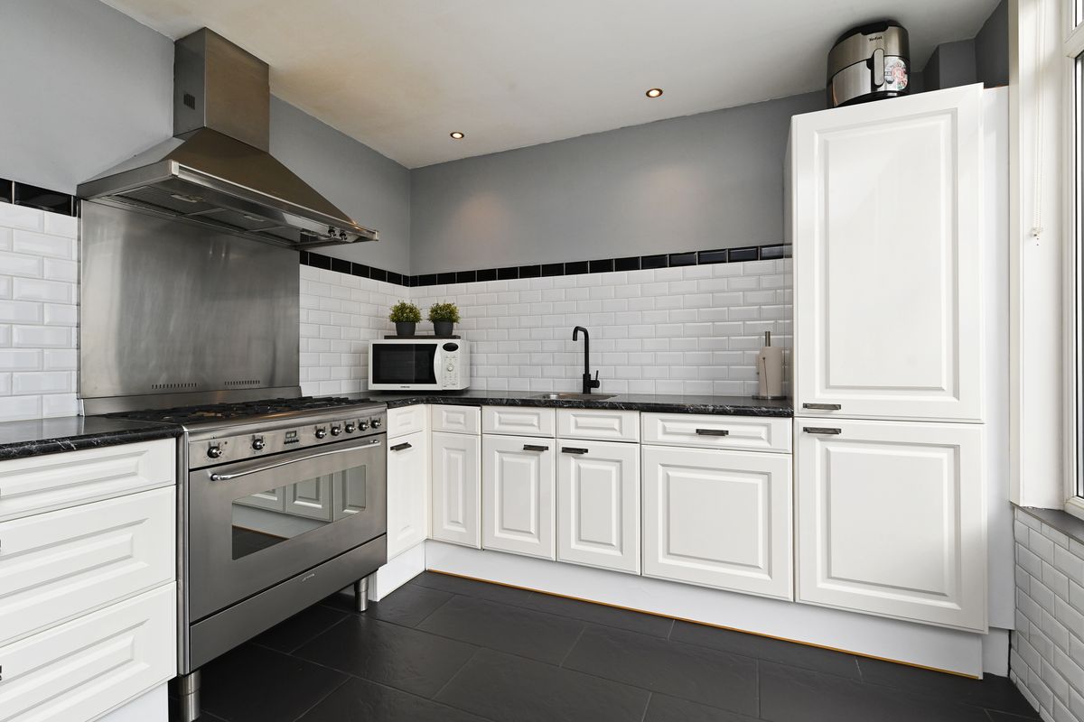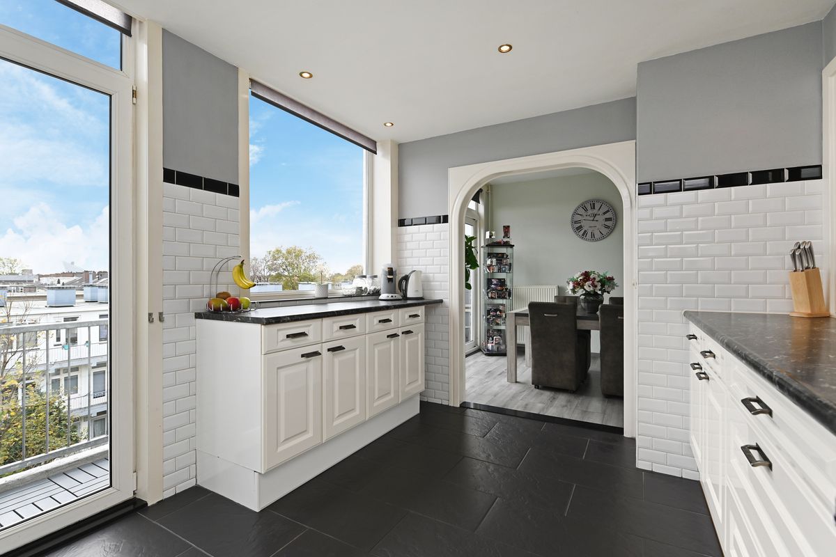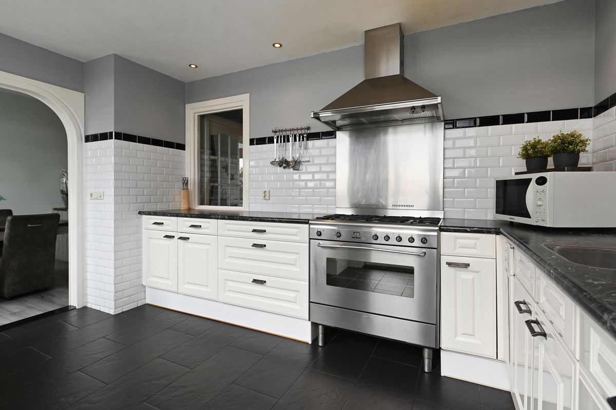 De ruime halfopen keuken grenst aan de eetkamer en is praktisch ingericht met veel werkruimte. De keuken is voorzien van diverse inbouwapparatuur, waaronder een koel-/vriescombinatie, grote SMEG-oven met 5-pits gasfornuis, RVS-afzuigkap en vaatwasser. Vanuit de keuken heeft u eveneens toegang tot het balkon.