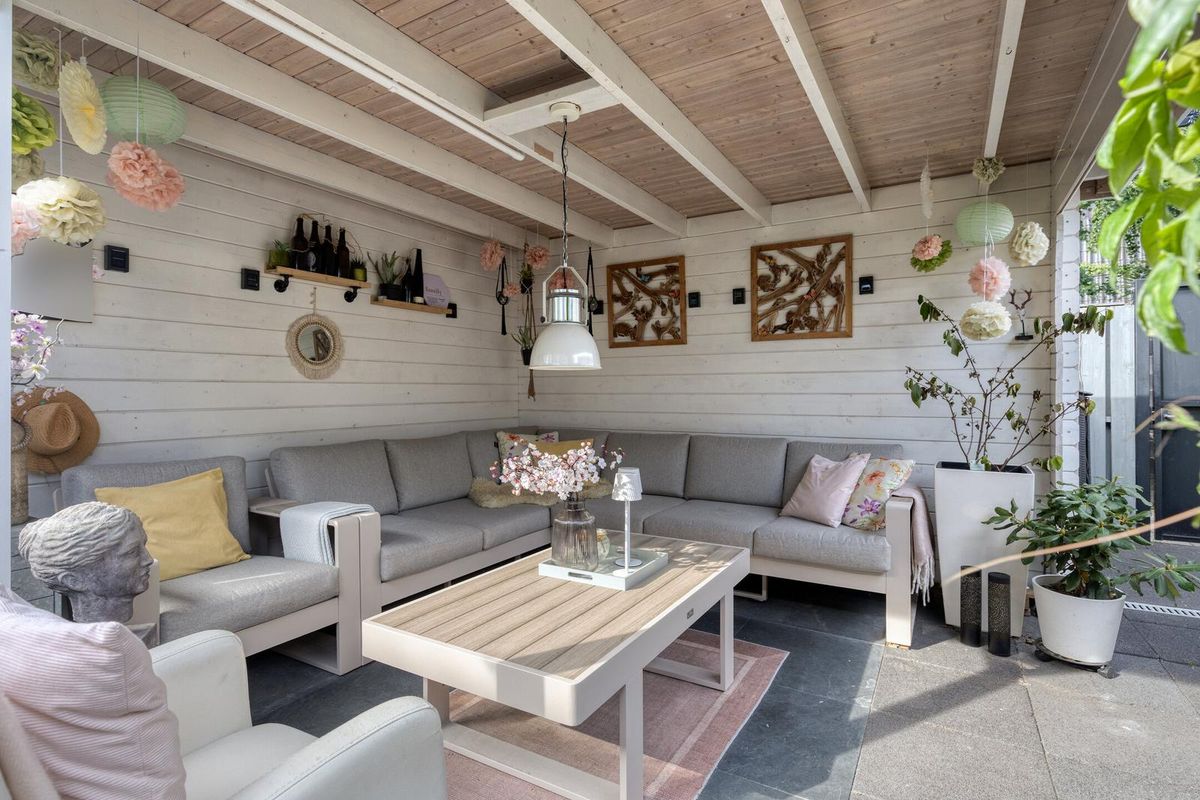 De tuin voelt als een kleine ontsnapping uit de dagelijkse drukte. Zin in zon? Kies een plekje in het midden. Liever een knusse avond buiten? Onder de royale overkapping achterin zit je perfect, zelfs bij een onverwachte bui. Aan de woning ligt een terras, ideaal voor zomerse barbecues. Hier kun je je eigen buitenplek helemaal maken zoals jij het wilt, of dat nu met bloemen, een moestuin of een lounge set is.