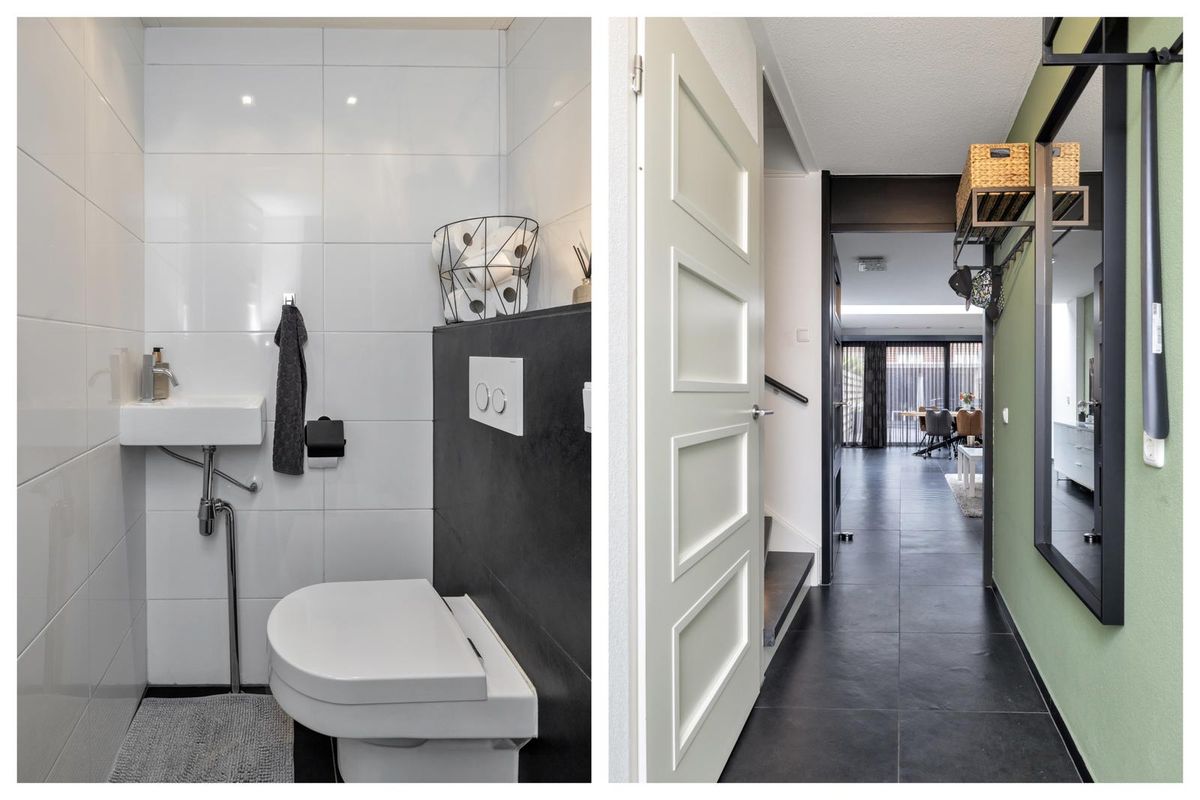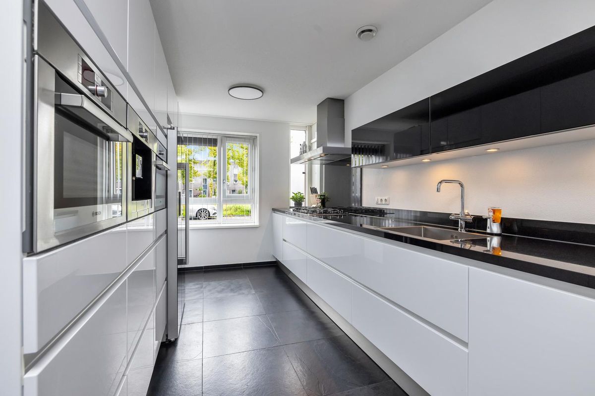 Begane grond: entree met hal, meterkast en moderne toiletruimte (2011) met hangend closet en fonteintje. De begane grond is voorzien van een natuurstenen vloer met vloerverwarming. De straatgerichte open keuken (2011) is luxe uitgevoerd en voorzien van diverse inbouwapparatuur, waaronder een 5-pits gaskookplaat, combi-magnetron, oven, Amerikaanse koelkast, koffiemachine en een vaatwasser. Vanuit de uitgebouwde woonkamer is er een mooi zicht op de achtertuin. Door de grote schuifpui en de lichtstraat in de uitbouw is er veel lichtinval.