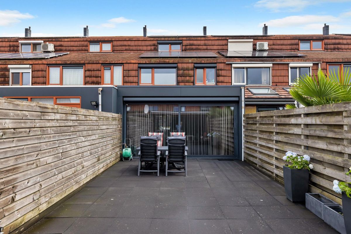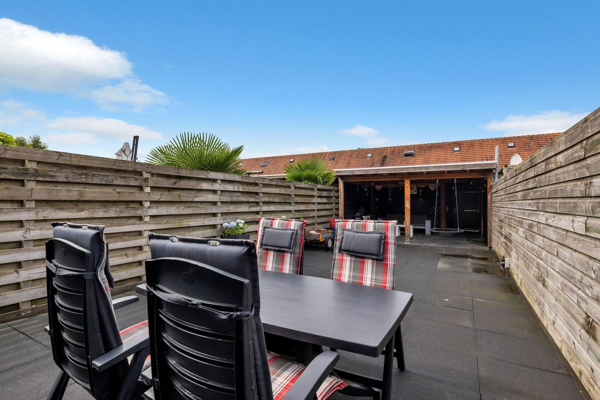 De achtertuin is onderhoudsvriendelijk aangelegd en ligt ideaal op het zuidwesten. Hierdoor geniet je volop van de middag- en avondzon. Achterin de tuin staat een vrijstaande berging met elektra en een grote overkapping. Een achterom is uiteraard aanwezig.