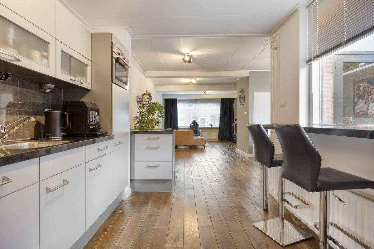 De moderne half open keuken met eetbar is in de aanbouw gelegen en voorzien van een inbouwapparatuur zoals 6pits gas-kookplaat, afzuigkap, combimagnetron, vaatwasser en koelkast. De keuken is de plek in huis waar je als gezin de meeste tijd doorbrengt, de eetbar aan het raam biedt dan ook een gezellige plek om te ontbijten, te werken en samen te komen terwijl er lekker gekokkereld wordt.