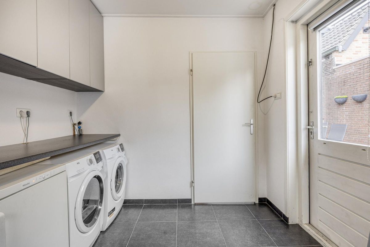 Het portaal, met hangtoilet, aansluitend aan de keuken geeft toegang tot de ruime praktische bijkeuken met witgoed-aansluitingen, voldoende berg- en werkruimte en zonnige tuin.