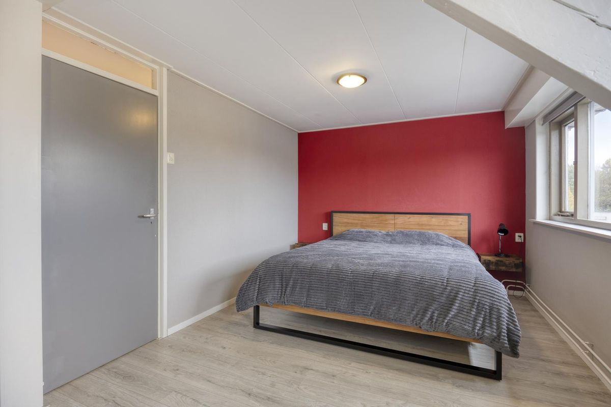 Ruime zolderkamer met dakkapel, die in gebruik is als bergzolder.