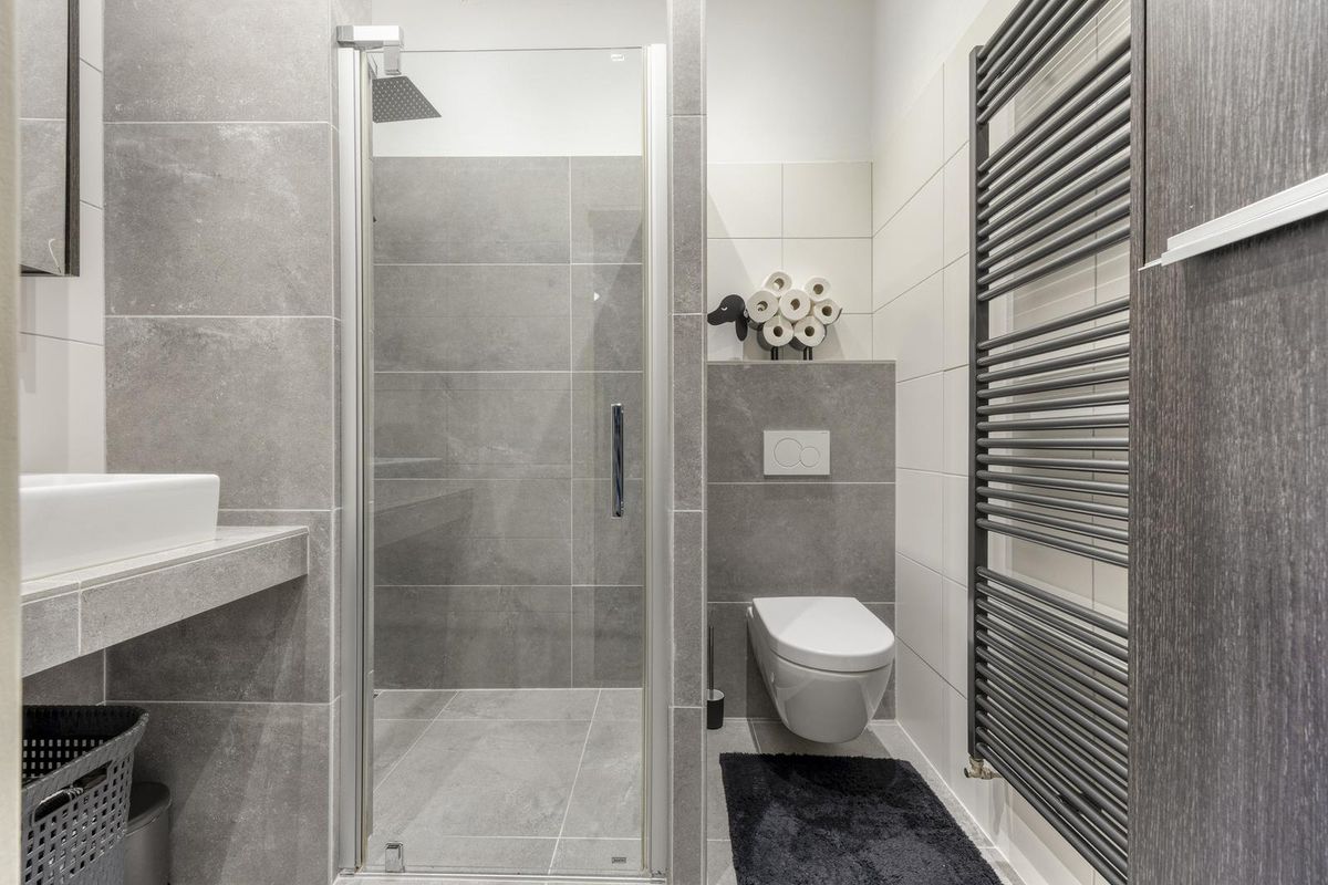 Overloop met vaste trap naar de 2e verdieping, Cv-ruimte met Vaillant HR-combiketel is, 3 slaapkamers met laminaat en moderne badkamer met ruime inloopdouche voorzien van douchedeur, hangtoilet, wastafel, mechanische ventilatie en design radiator. De master slaapkamer is 2024 voorzien van een comfortabele airconditioning.