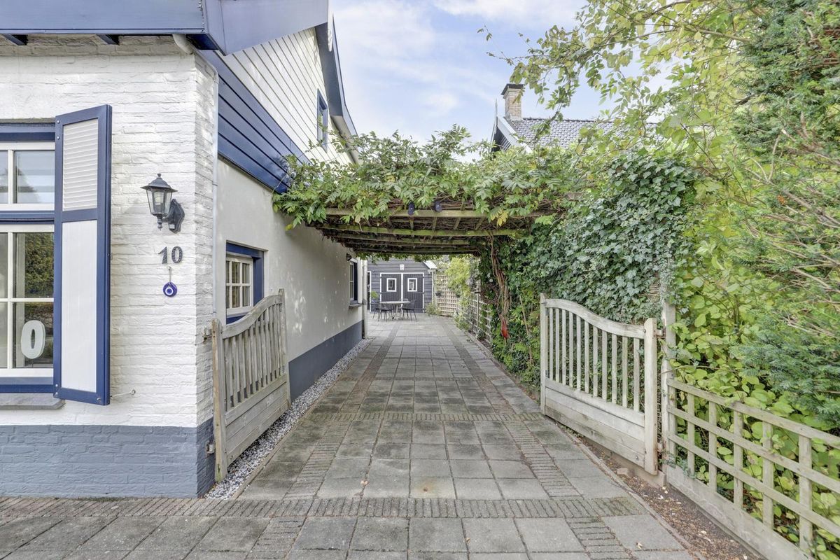 Achter de woning ligt een verrassend diepe en fraai aangelegde tuin met een fantastisch weids uitzicht. De combinatie van terrassen, gazon, borders maakt dit tot een bijzonder plekje. Halverwege de tuin staat een houten prieel, waar u heerlijk kunt zitten en in alle rust kunt genieten van het uitzicht over de omliggende weilanden. De tuin biedt volop zon en schaduwrijke plekjes gedurende de gehele dag. Door de grote mate van privacy kunt u hier in alle rust ontspannen. Verder is er een ruime schuur/garage met kap en bergzolder aanwezig, welke tevens is voorzien van een overkapping, ideaal voor het stallen van fietsen, het opbergen van tuingereedschap of het uitoefenen van een hobby. De schuur is tevens geschikt als garage, welke met de auto via de zijgevel bereikbaar is. In de schuur/garage is elektra en water aanwezig. Aan de achtergevel is een buitenkraan aanwezig met zowel warm- als koud water. De voortuin is eveneens keurig aangelegd met sierbestrating en beplanting. De oprit biedt voldoende parkeergelegenheid op eigen terrein.