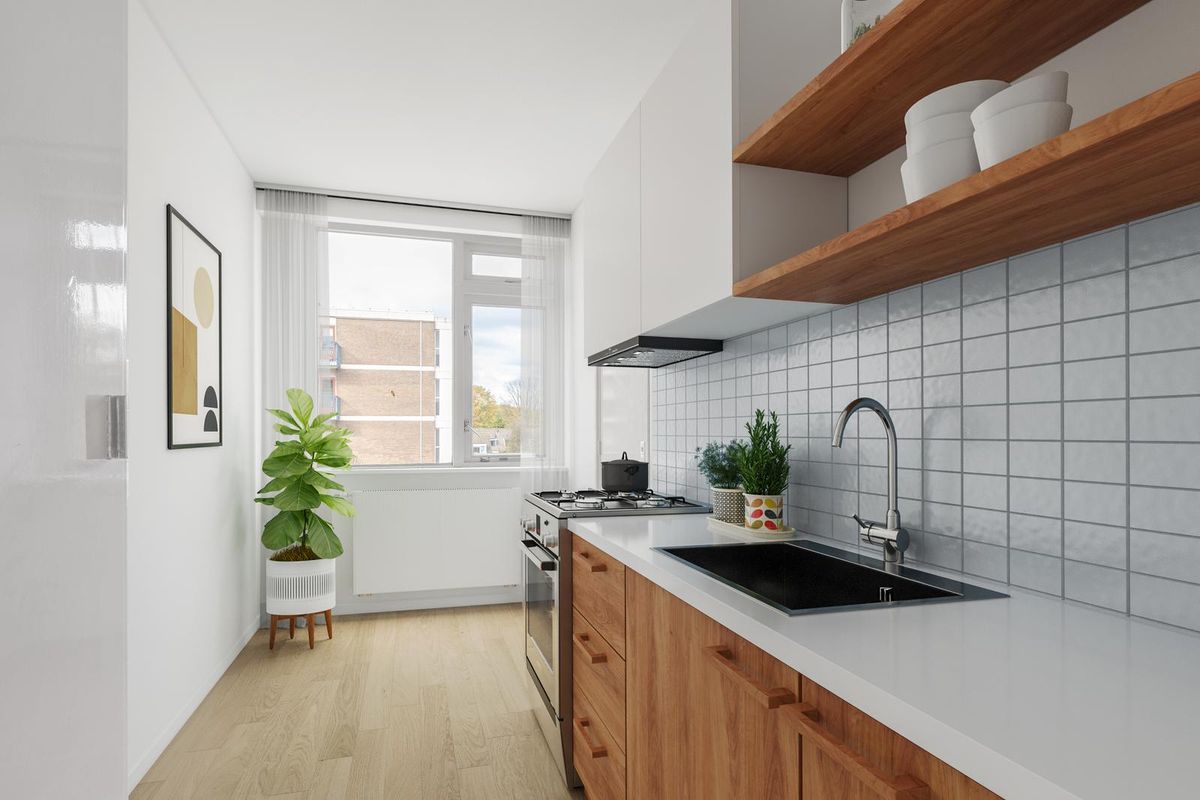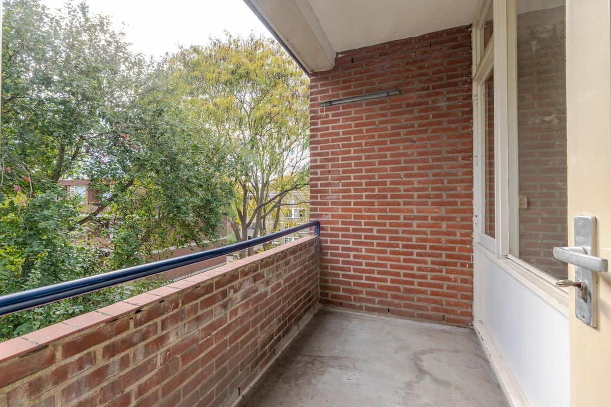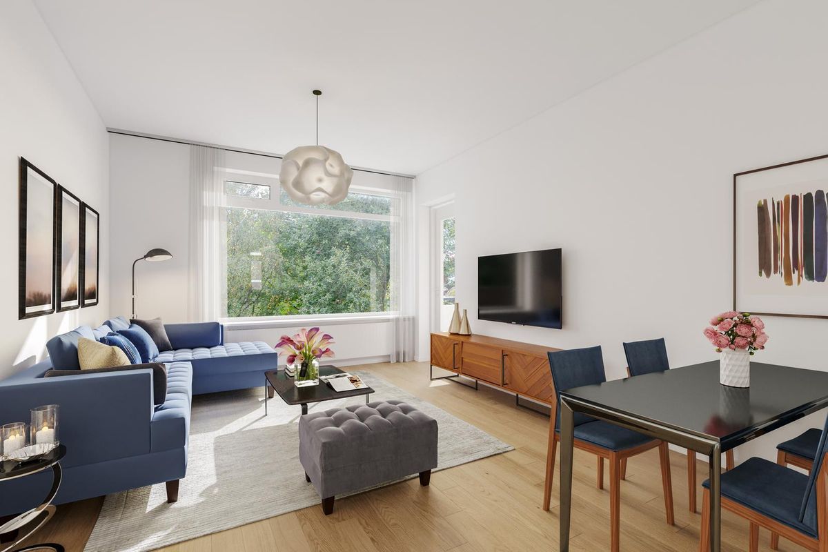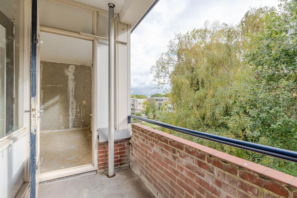 * Woonkamer aan de achterzijde met vrij uitzicht, voorzien van vaste kast en een deur naar het balkon.