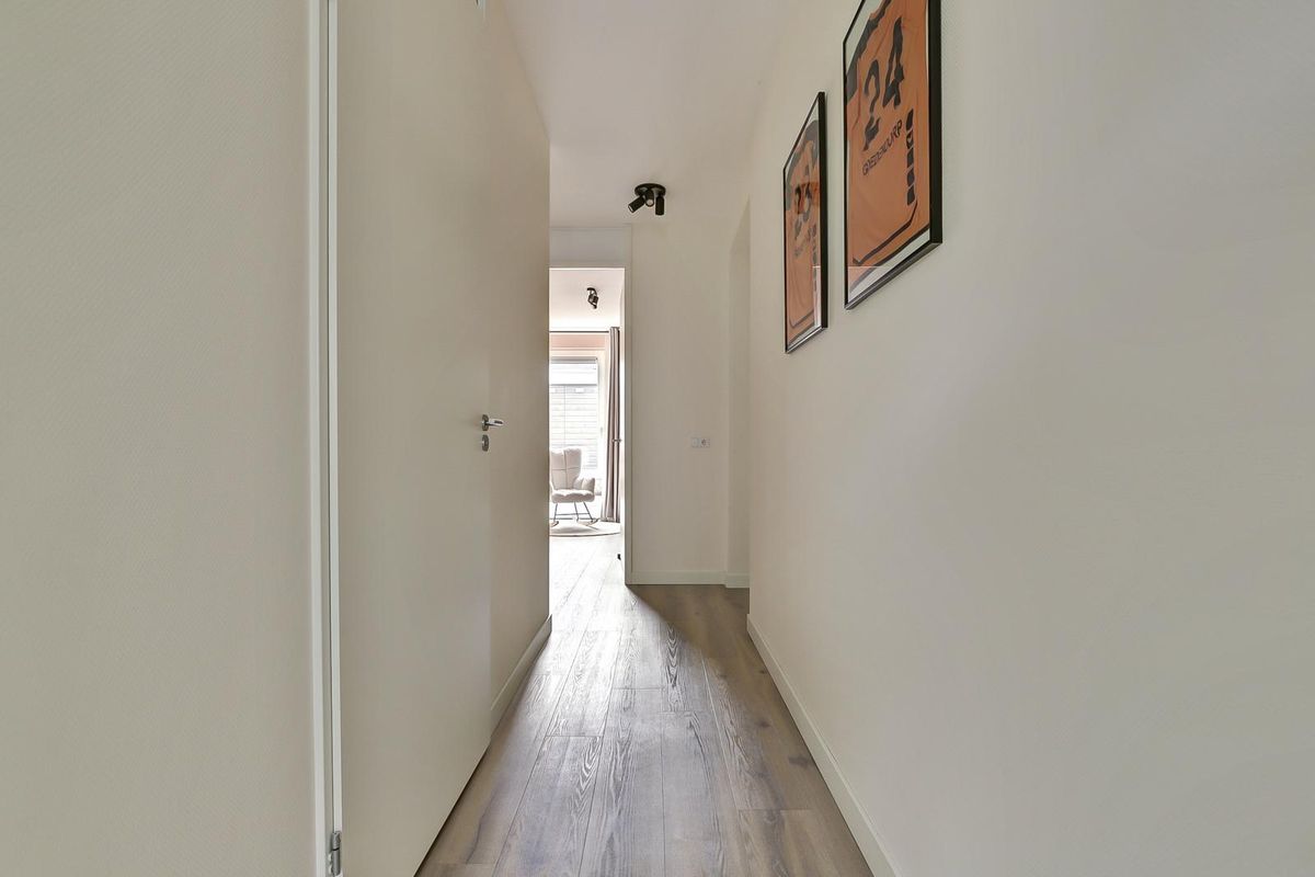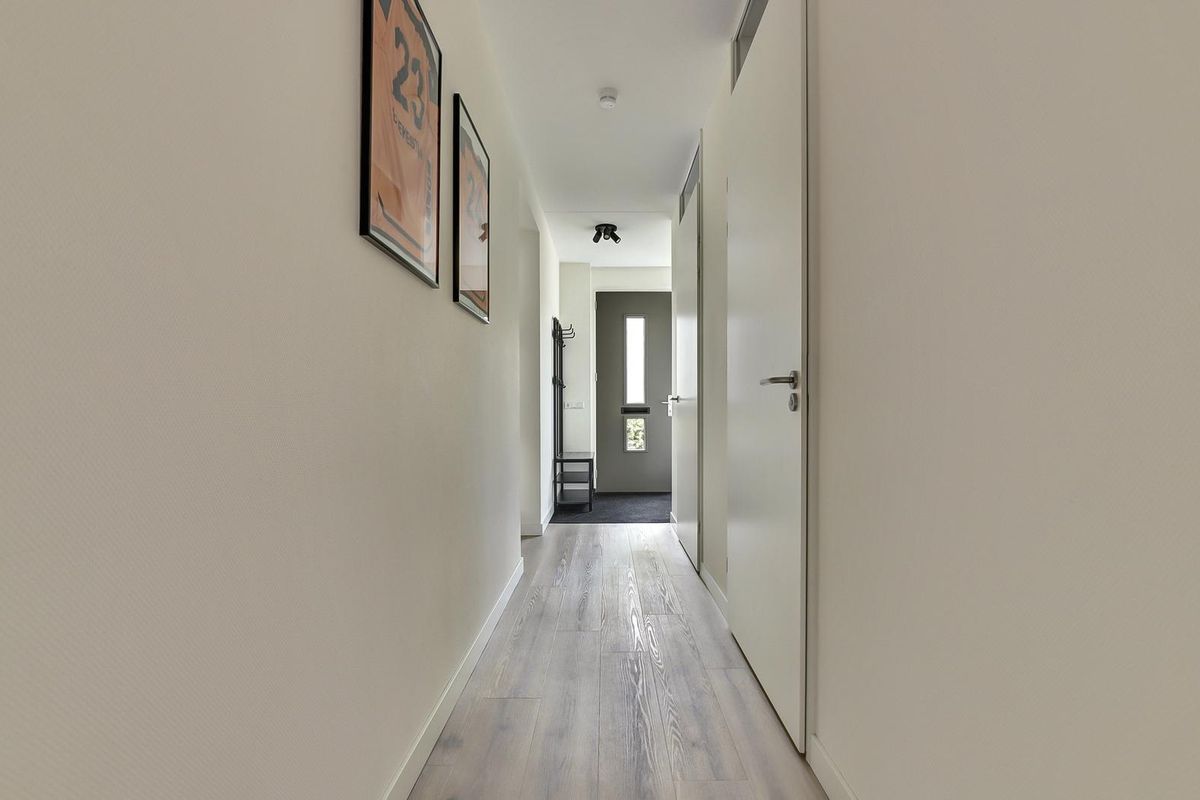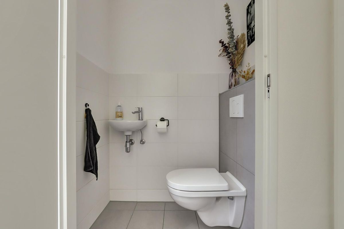 Je komt binnen in een ruime, lichte hal met toegang tot de meterkast en een praktische berging met cv-ketel en aansluiting voor de wasmachine. Er is een zwevend toilet met fonteintje en de badkamer is modern en overzichtelijk ingedeeld met een inloopdouche en een wastafel.