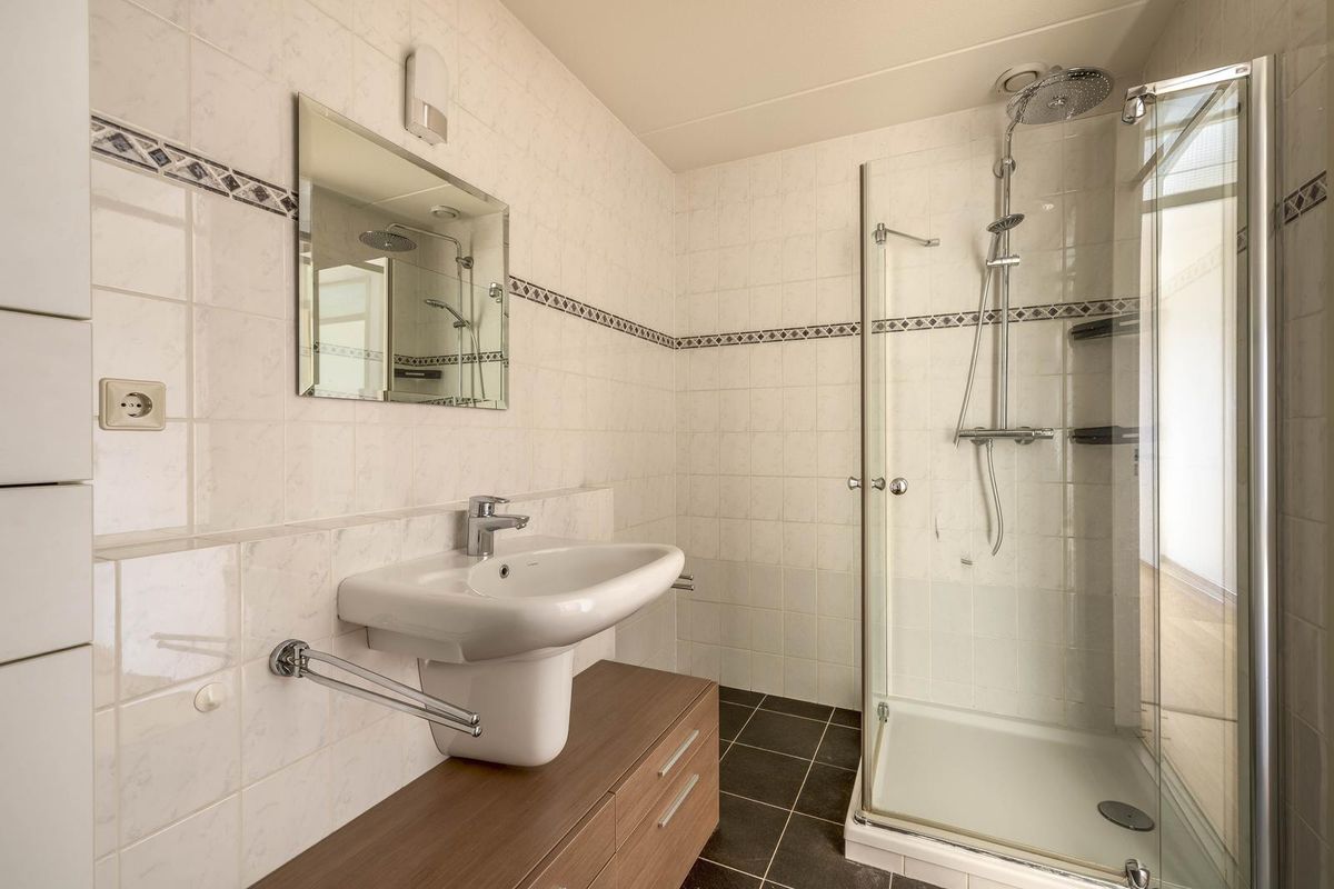 - Lichte badkamer (ca. 5 m²) douche met douchecabine , wastafel en designradiator.