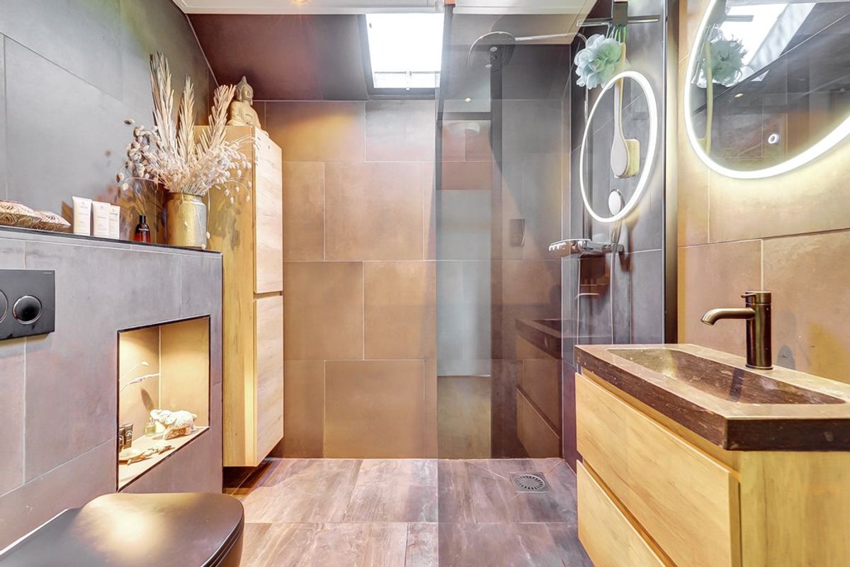 Op de eerste verdieping bevinden zich 2 slaapkamers en de badkamer. 1 Slaapkamer beschikt over een eigen wastafel. De badkamer is prachtig om te zien en is luxe afgewerkt met o.a. een inloopdouche, een wastafelmeubel, een vrijhangend closet en een designradiator.