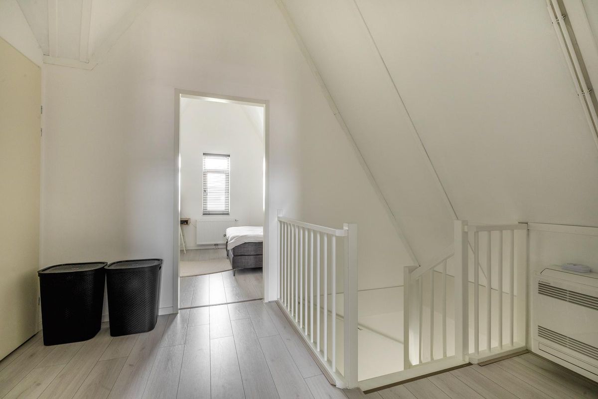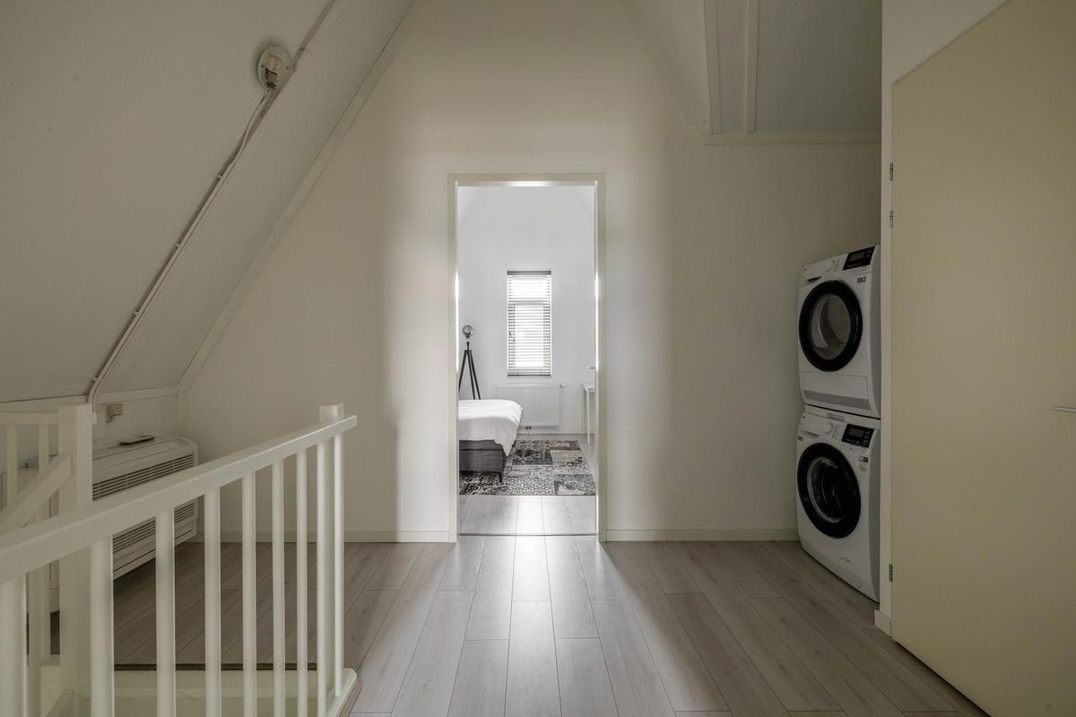 De tweede verdieping is bereikbaar door middel van de vaste trap. Op de overloop zijn een airco, de witgoedaansluiting, de cv-ketel en de omvormer van de zonnepanelen aanwezig.