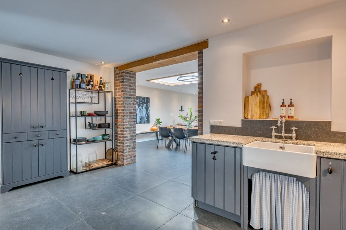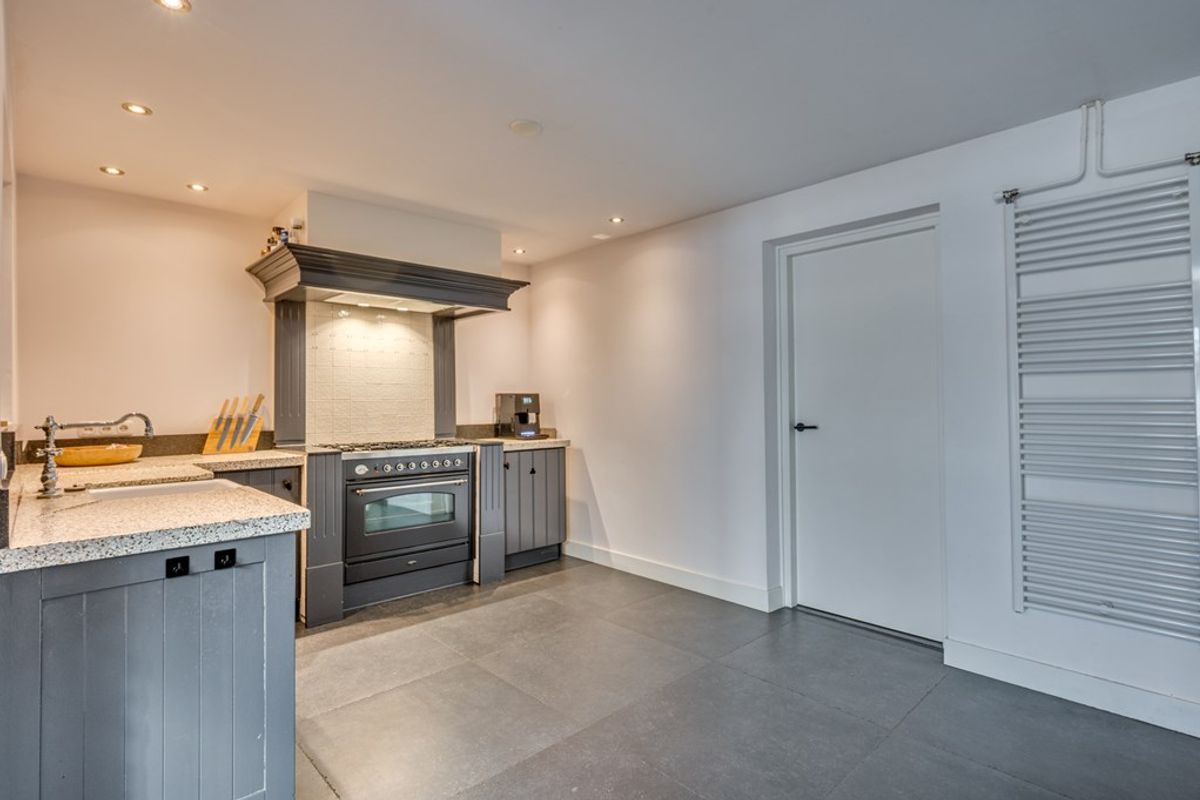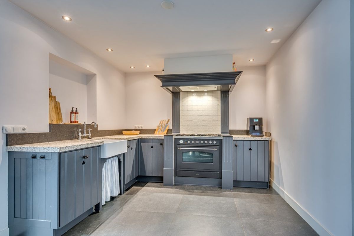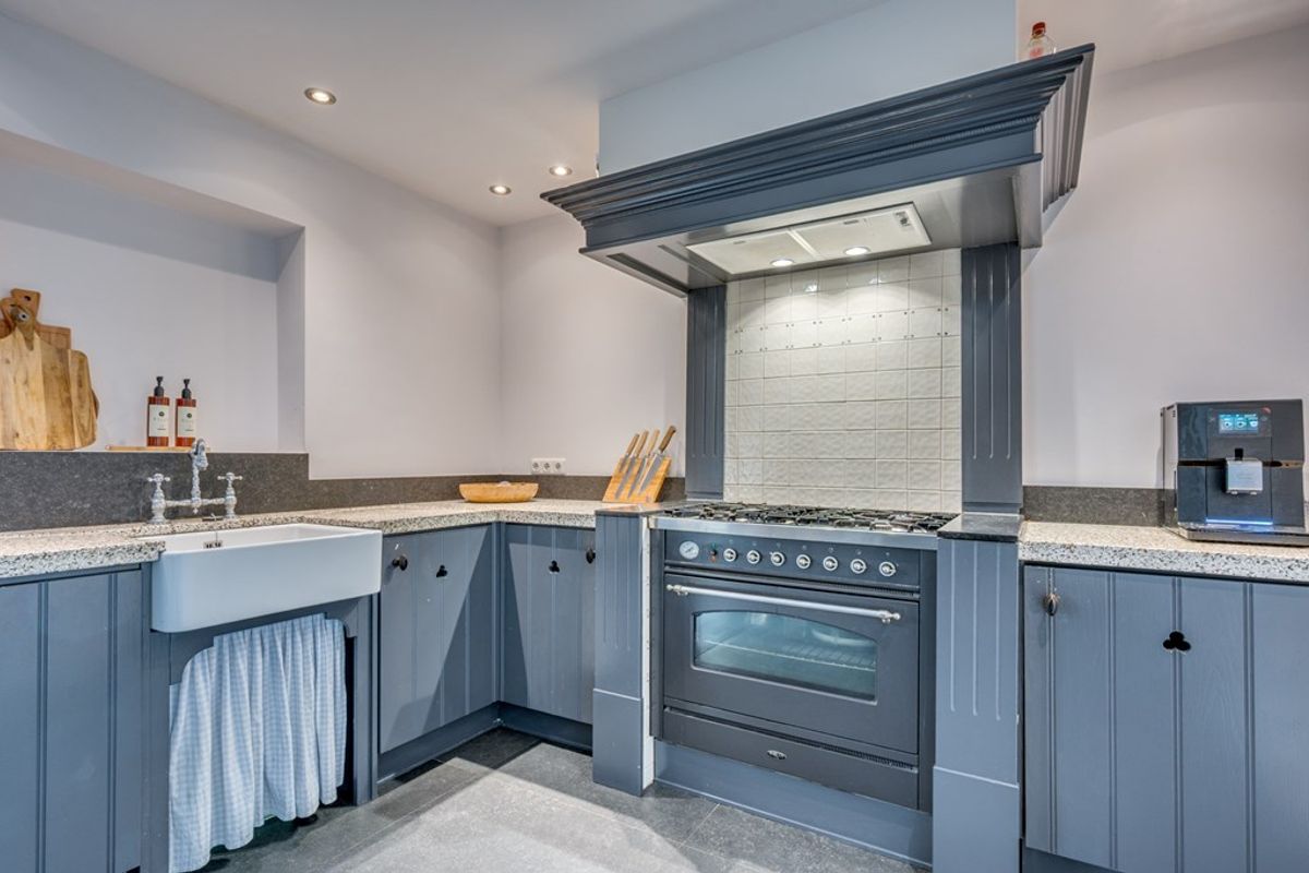 - Keuken (16m²) met sfeervolle inbouwcombinatie inclusief inbouwapparatuur: 5 pits gas kookplaat, oven, afzuigkap, vaatwasmachine en koelkast.