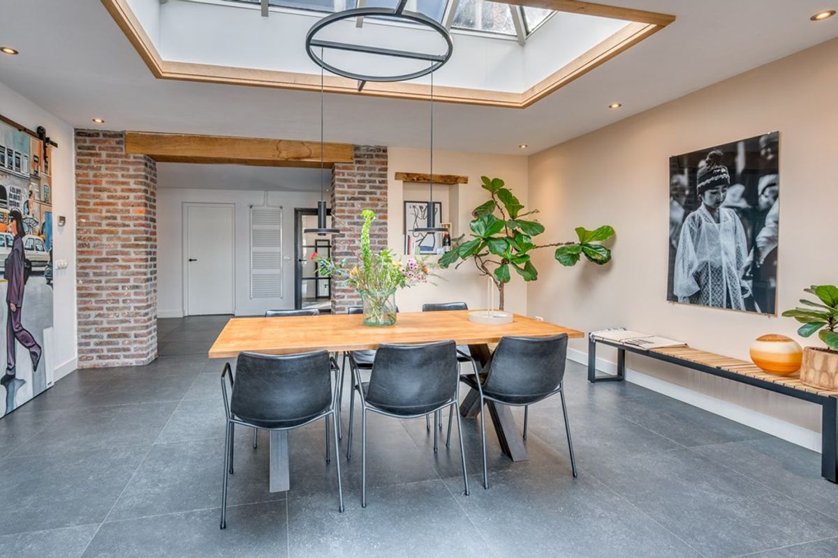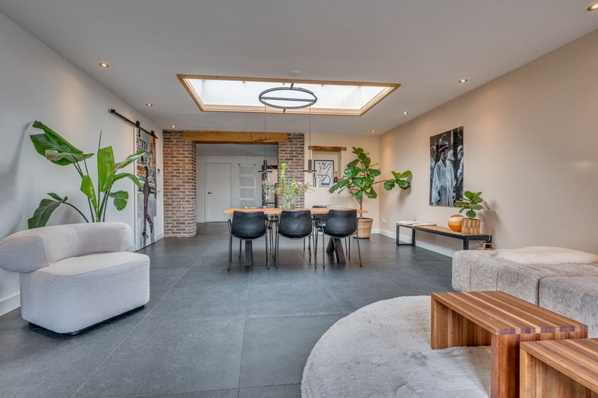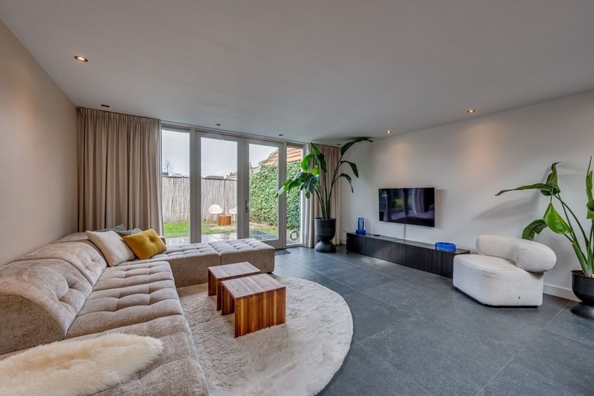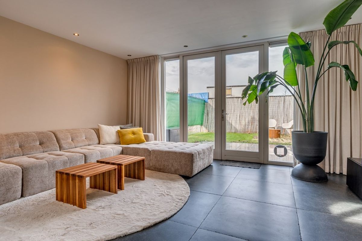 - Ruime en lichte woonkamer (40m²) met tegelvloer met vloerverwarming en tuindeuren naar terras.