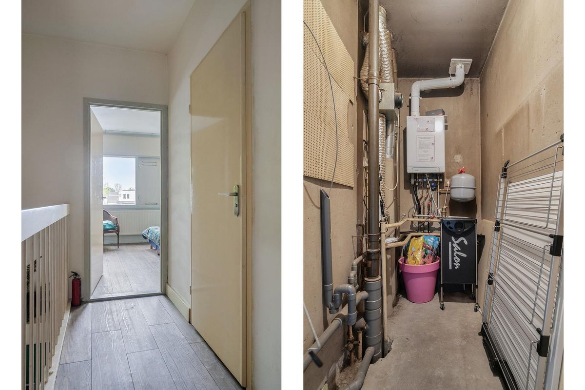 Boven bevinden zich drie slaapkamers, netjes afgewerkt en elk met hun eigen afmetingen en indelingsmogelijkheden. De hoofdslaapkamer ligt aan de voorzijde en biedt uitzicht op de rustige straat. Aan de achterzijde bevinden zich twee kamers die ideaal zijn als kinderkamer, werkkamer of hobbyruimte. De badkamer is modern betegeld en uitgerust met een regendouche, wastafelmeubel en wandcloset. Ook is er een aparte berging aanwezig met opstelling van de cv-installatie en ventilatiesysteem.
